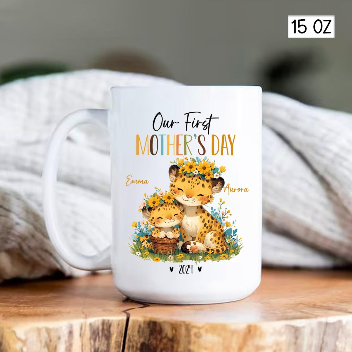 Mugs For New Mummy, Mom And Baby Leopard Coffee Mug, Personalized Leopard Mama & Baby Ceramic Cup, Custom Our First Mothers Day