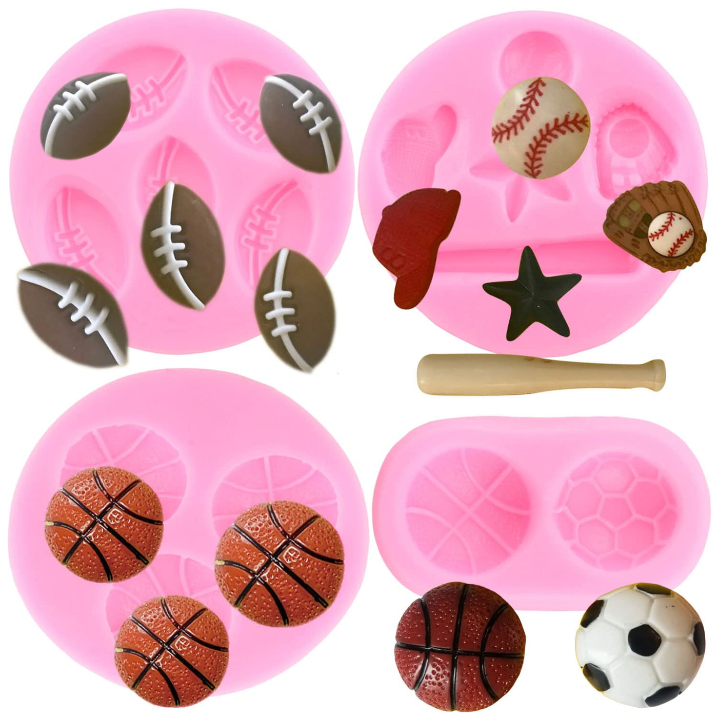 Mujiang Ball Silicone Molds Football Baseball Basketball Rugby Fondant Mold For Cake Decorating Chocolate Candy Clay Set Of 4