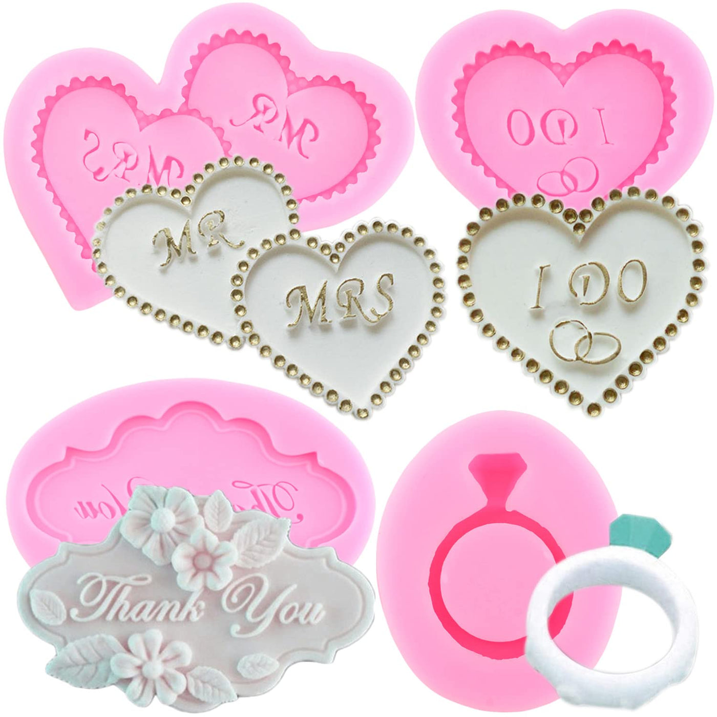 Mujiang Heart Mr Mrs I Do Silicone Fondant Mold Thank You Ring Candy Chocolate Mold For Wedding Cake Decorating Gum Paste Polyme