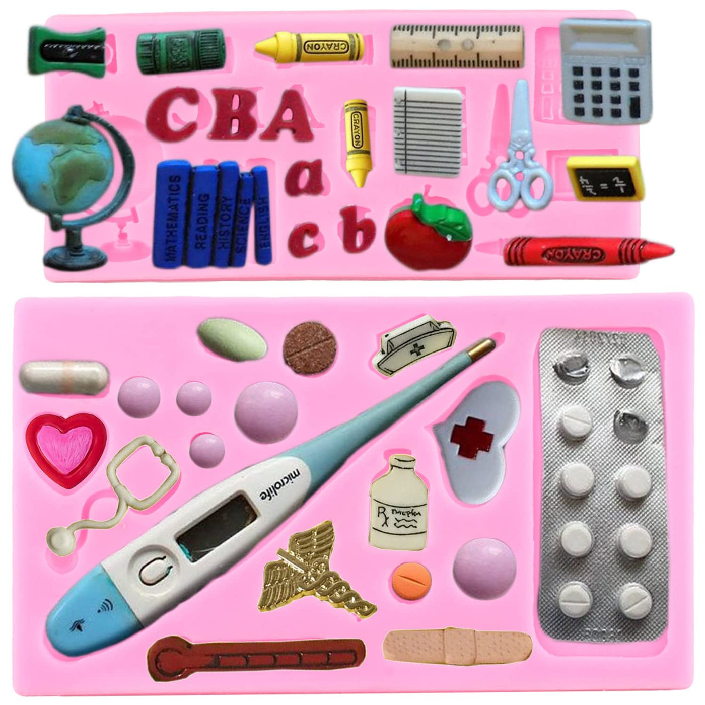 Mujiang Medical Apparatus Silicone Mold Learning Series Fondant Molds For Cake Decorating Chocolate Candy Resin Clay Set Of 2
