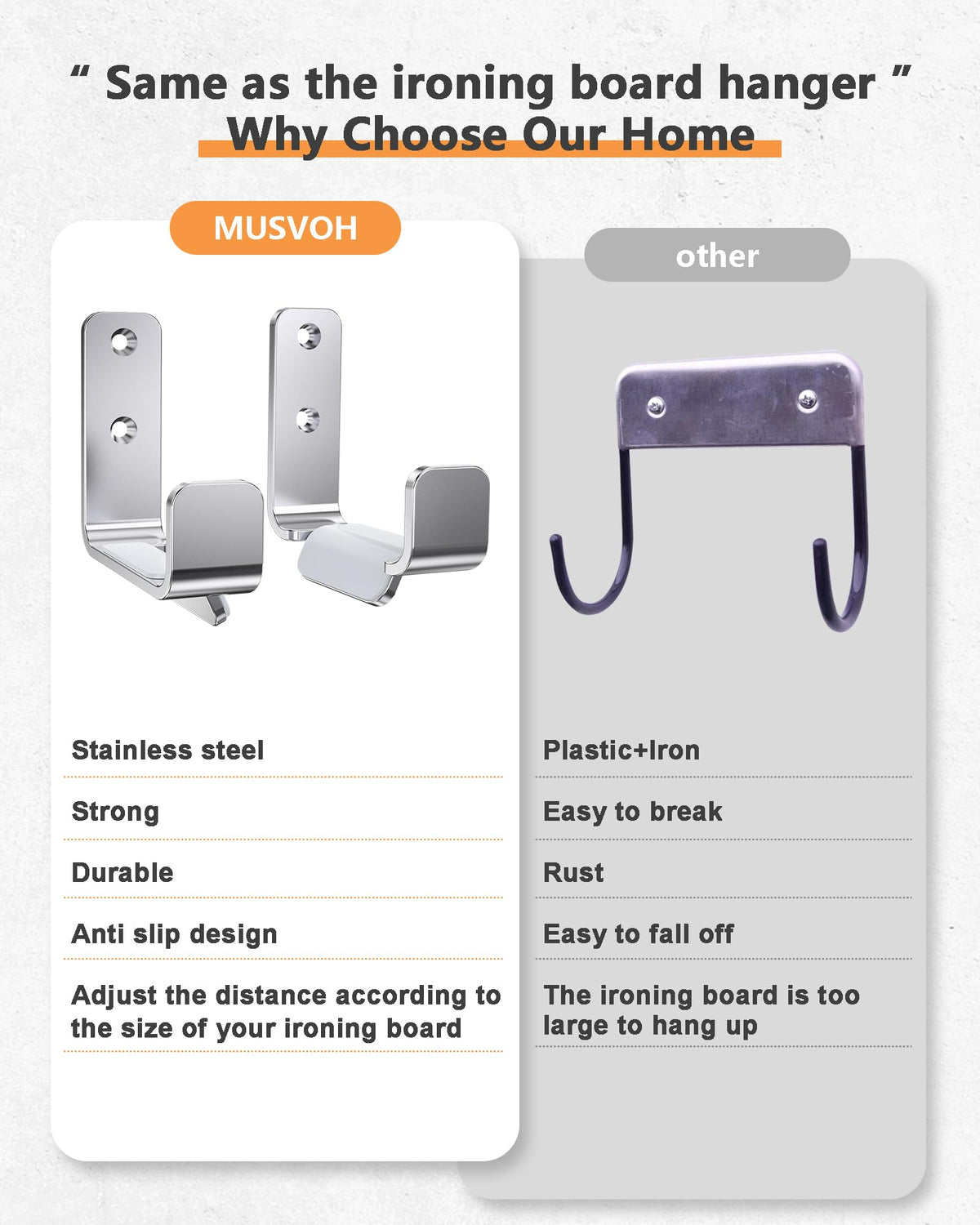 Musvoh Ironing Board Holder Hanger Wall Mount, 304 Stainless Steel Ironing Board Hanger Y T Leg For Adjustable Distance Ironing
