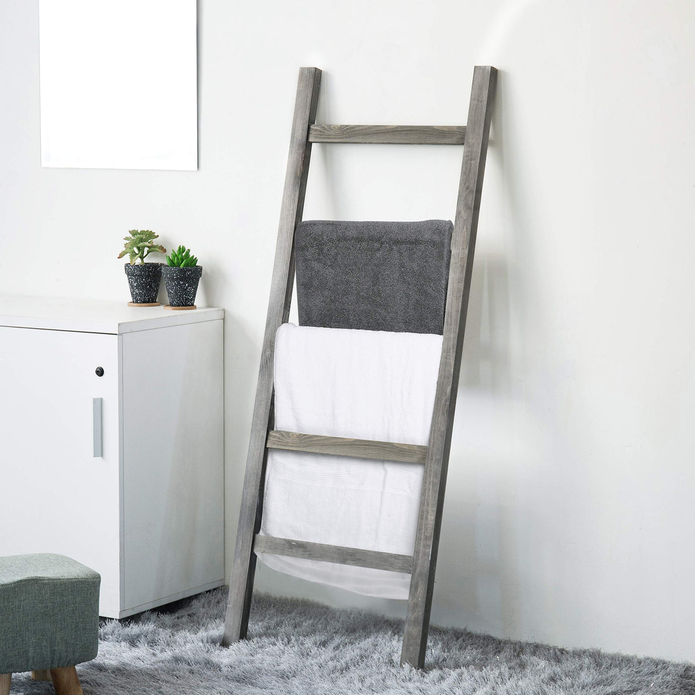 Mygift 54 Inch Tall Fully Assembled Wood Blanket Ladder, 5-Tier Wall Leaning Towel Rack, No Assembly, Gray