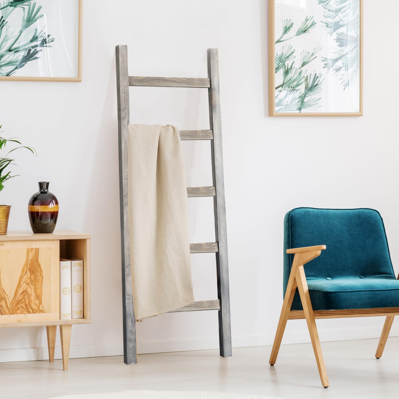 - Q: What style does the blanket ladder complement? A: The vintage weathered gray finish adds a rustic charm that complements various styles, including farmhouse and contemporary decor.