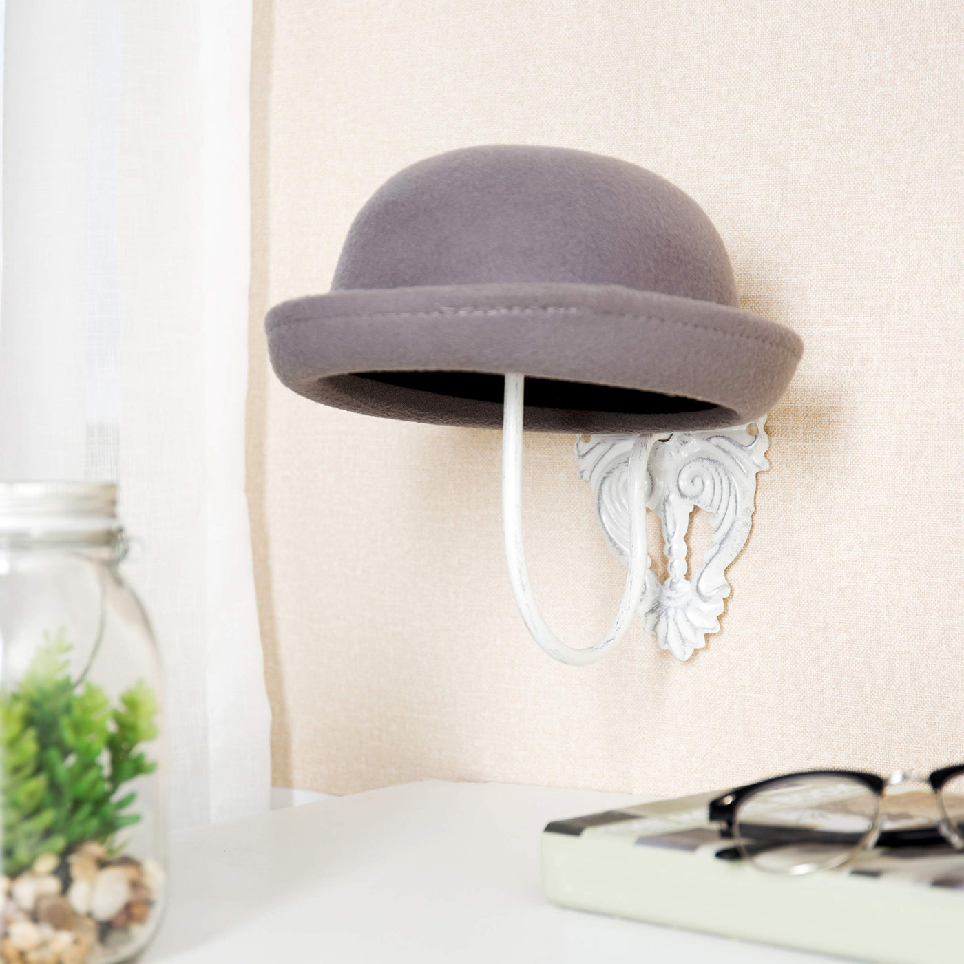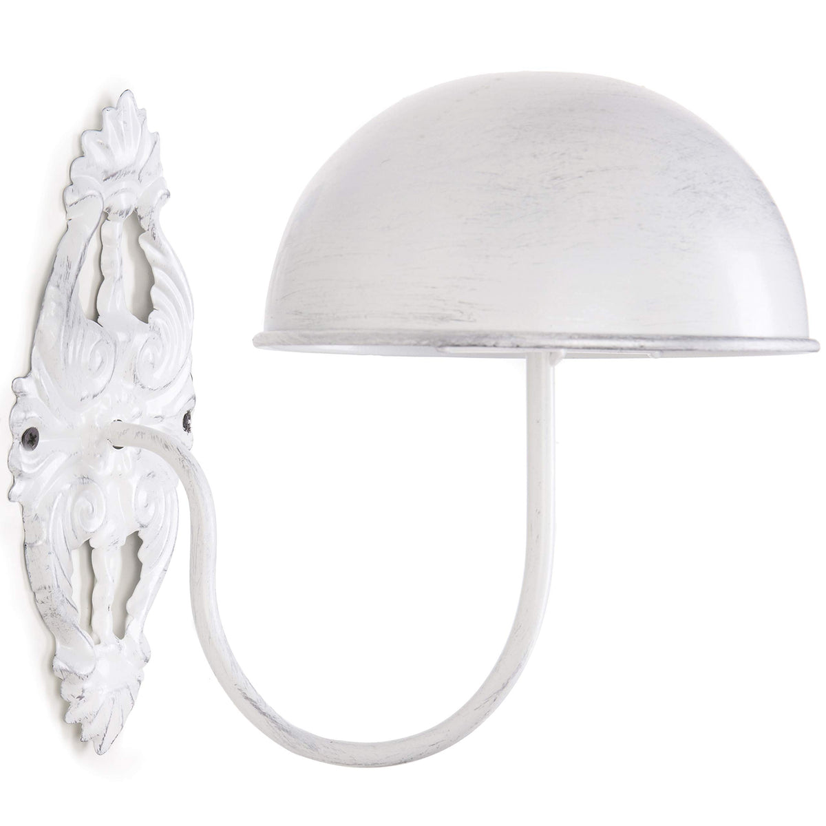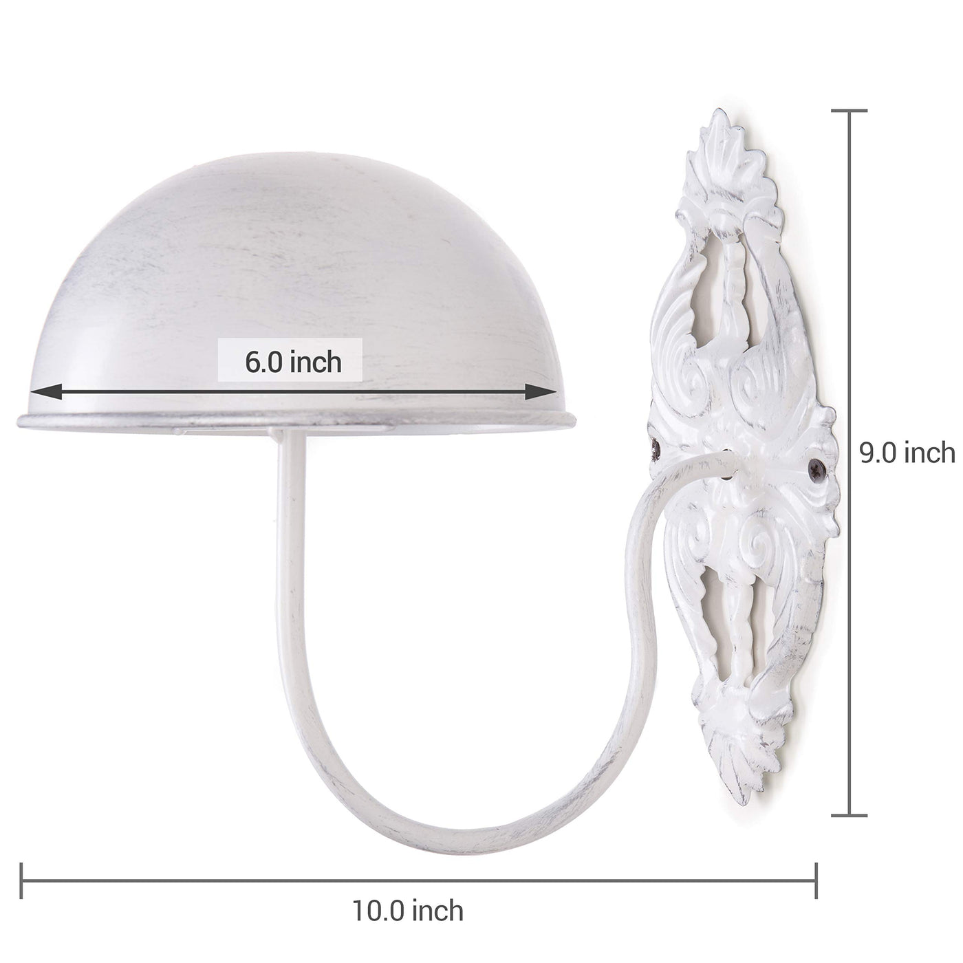 A helpful accessory in the home or millinery shop, these wall-mounted hat and wig holders provide a stylish way to store and display wardrobe items or retail merchandise. The antique design provides a touch of formal flourish, while the wide dome top helps maintain proper structure of hats to keep them looking sharp and new. Mounting to the wall, these racks offer a convenient and space-saving way to ensure that hats and wigs are always organized and ready to wear. SPECS: 9 H 6.5 W 9 L; Dome - 6.5 Diameter (in inches)