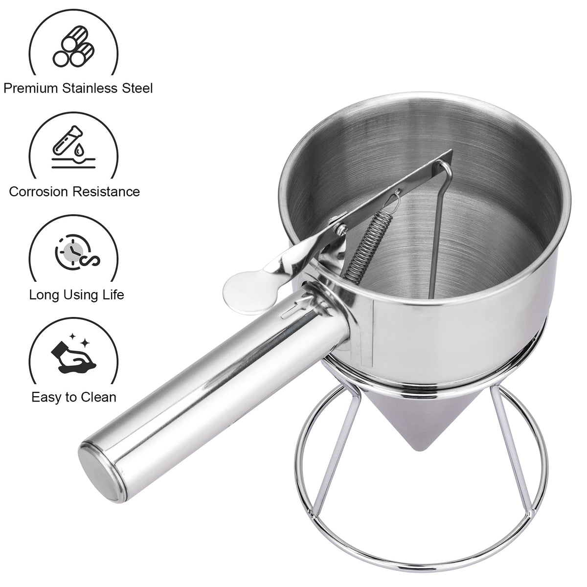 Mylifeunit Pancake Batter Dispenser, Stainless Steel Funnel Cake Dispenser With Stand