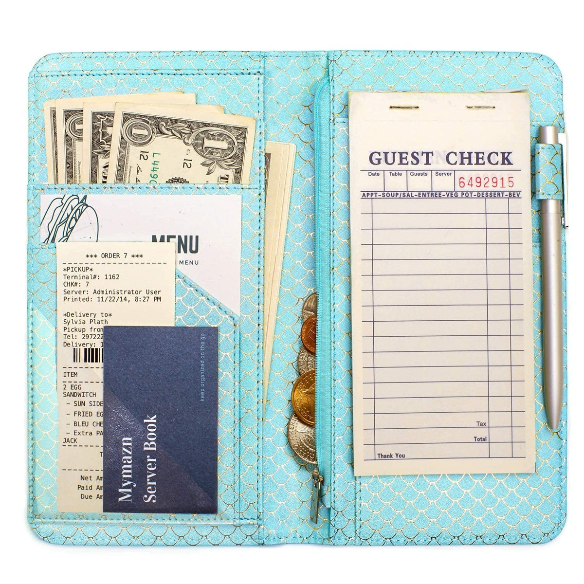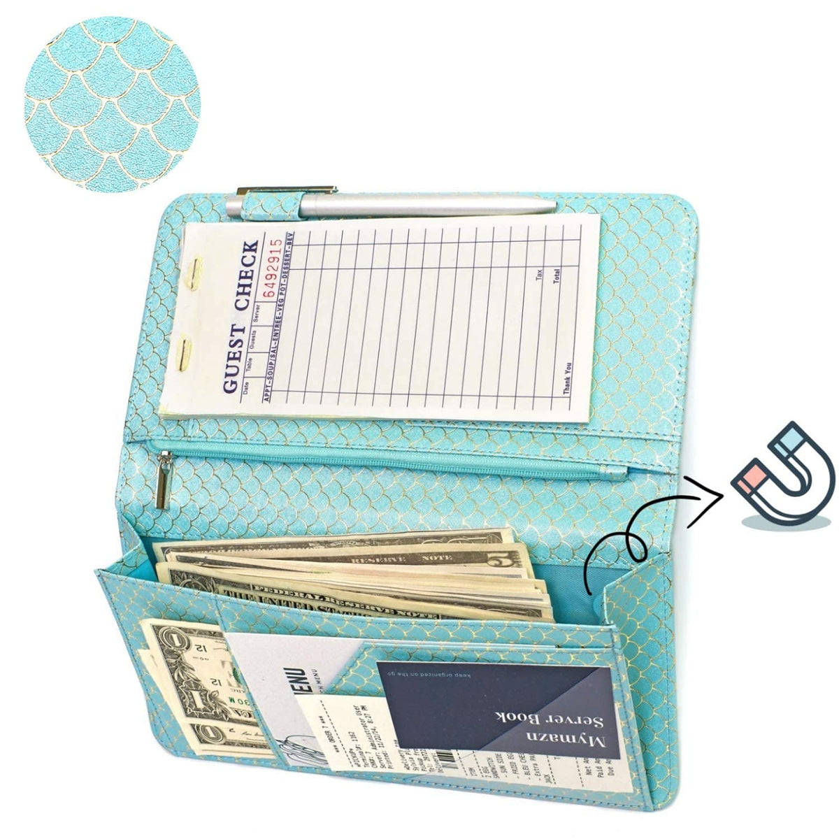 Mymazn Server Wallet Waitress Book Magnetic With Money Zipper Pocket Shimmer Waiter Organizer Fits Restaurant Guest Check Order