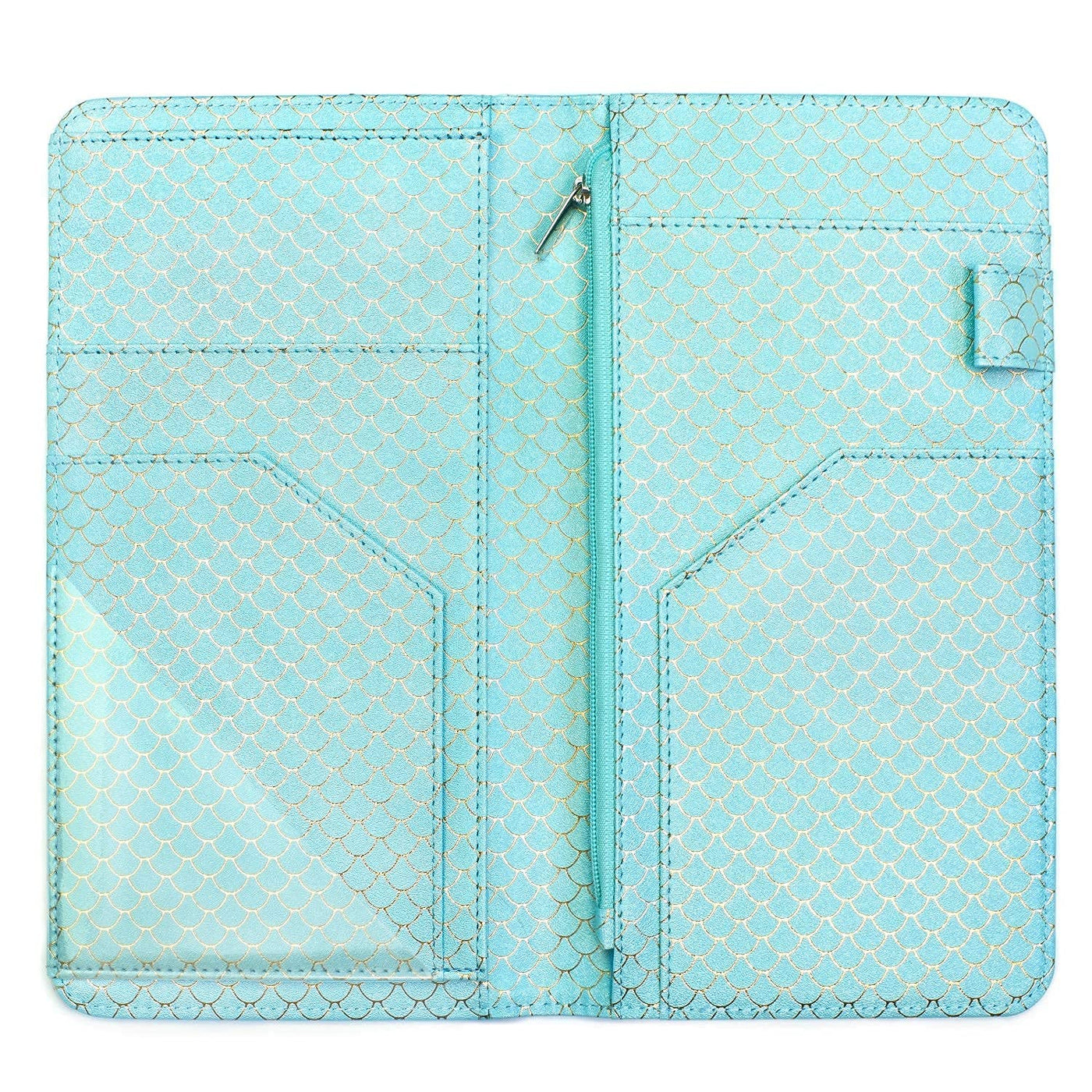 • Q: What material is the Mymazn Server Wallet made of? A: The wallet is made of high-quality faux leather with a metallic mermaid scales pattern.