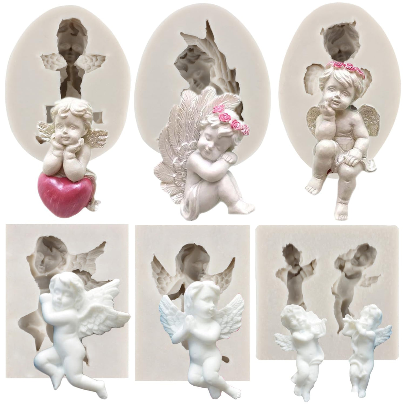 Mypracs Angel Baby Silicone Fondant Molds Cupid Candy Molds For Baby Shower Cake Decoration Cupcake Topper Chocolate Gum Paste P