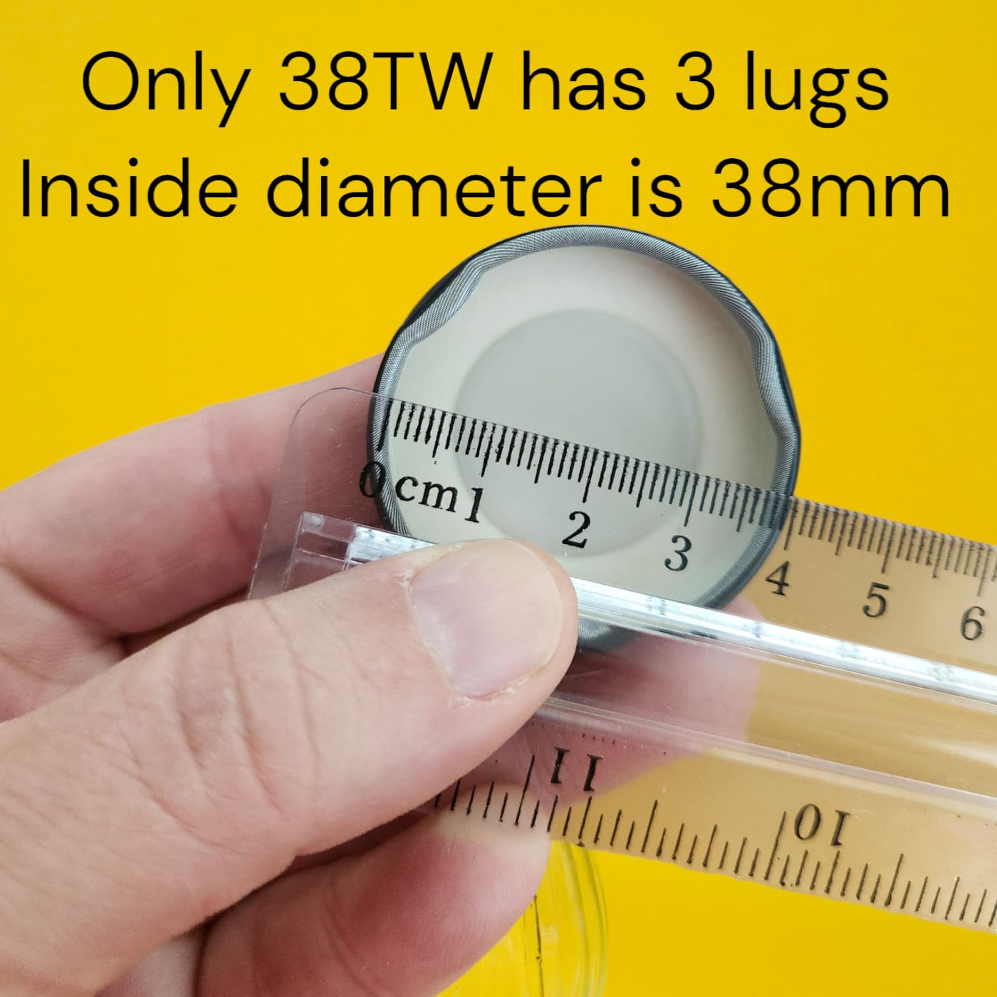 • Q: What should I check before purchasing these lids? A: Ensure that the widest point of your bottle neck is 38 mm and that it has three threads on the neck for compatibility with 38TW lug lids.