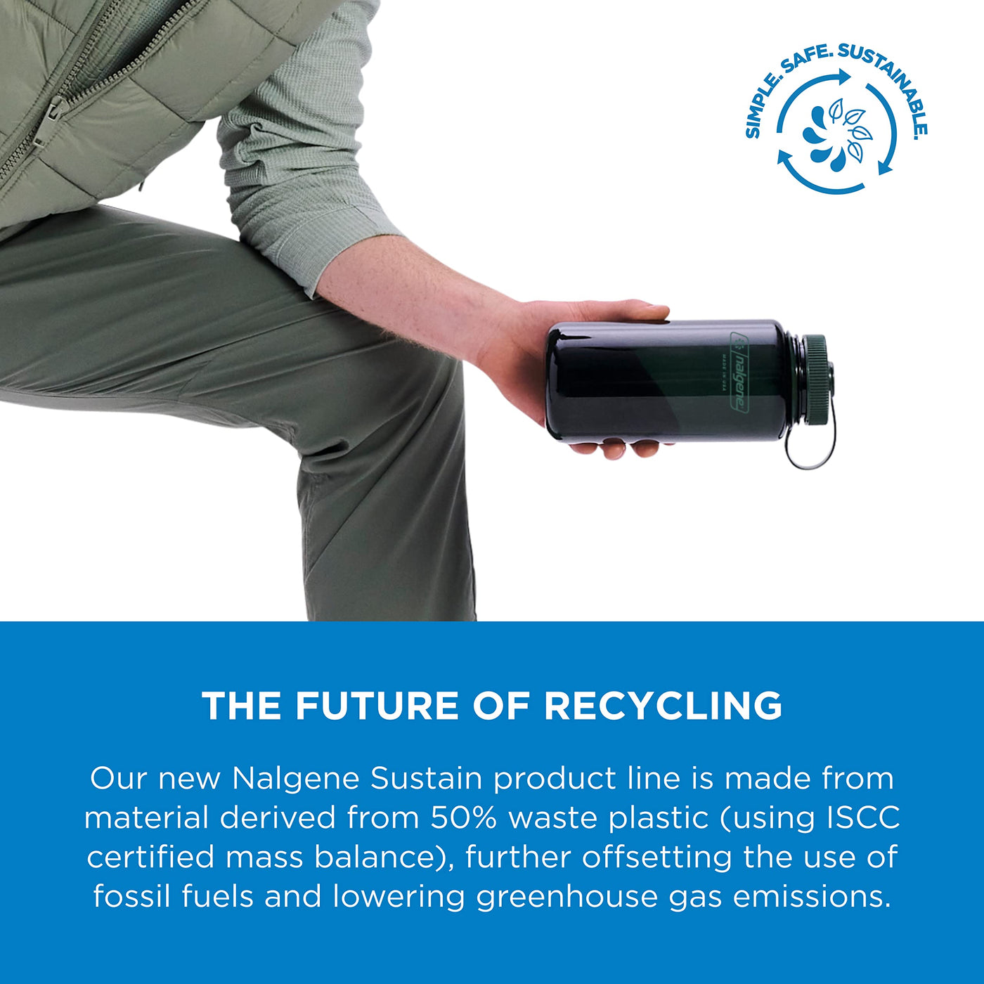 - Q: What is the purpose of the Nalgene Sustain product line? A: The Nalgene Sustain product line aims to offset the use of fossil fuels and lower greenhouse gas emissions by utilizing material derived from recycled plastic.