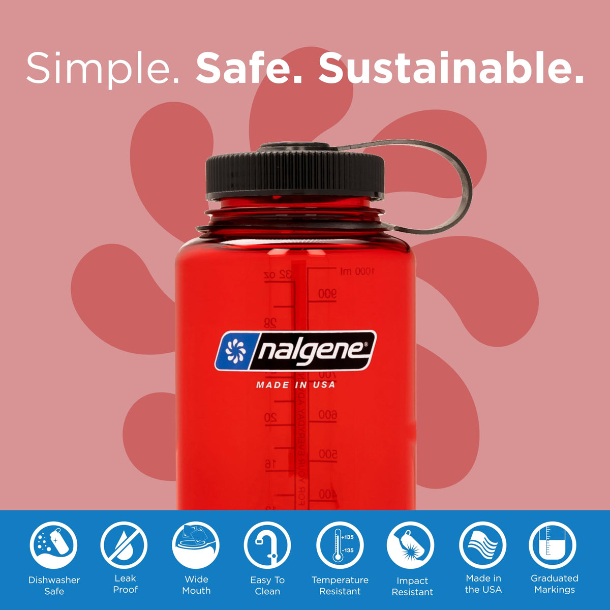 Nalgene Sustain Tritan BPA-Free Water Bottle Made with Material Derived from 50% Plastic Waste 32 OZ Wide Mouth Red