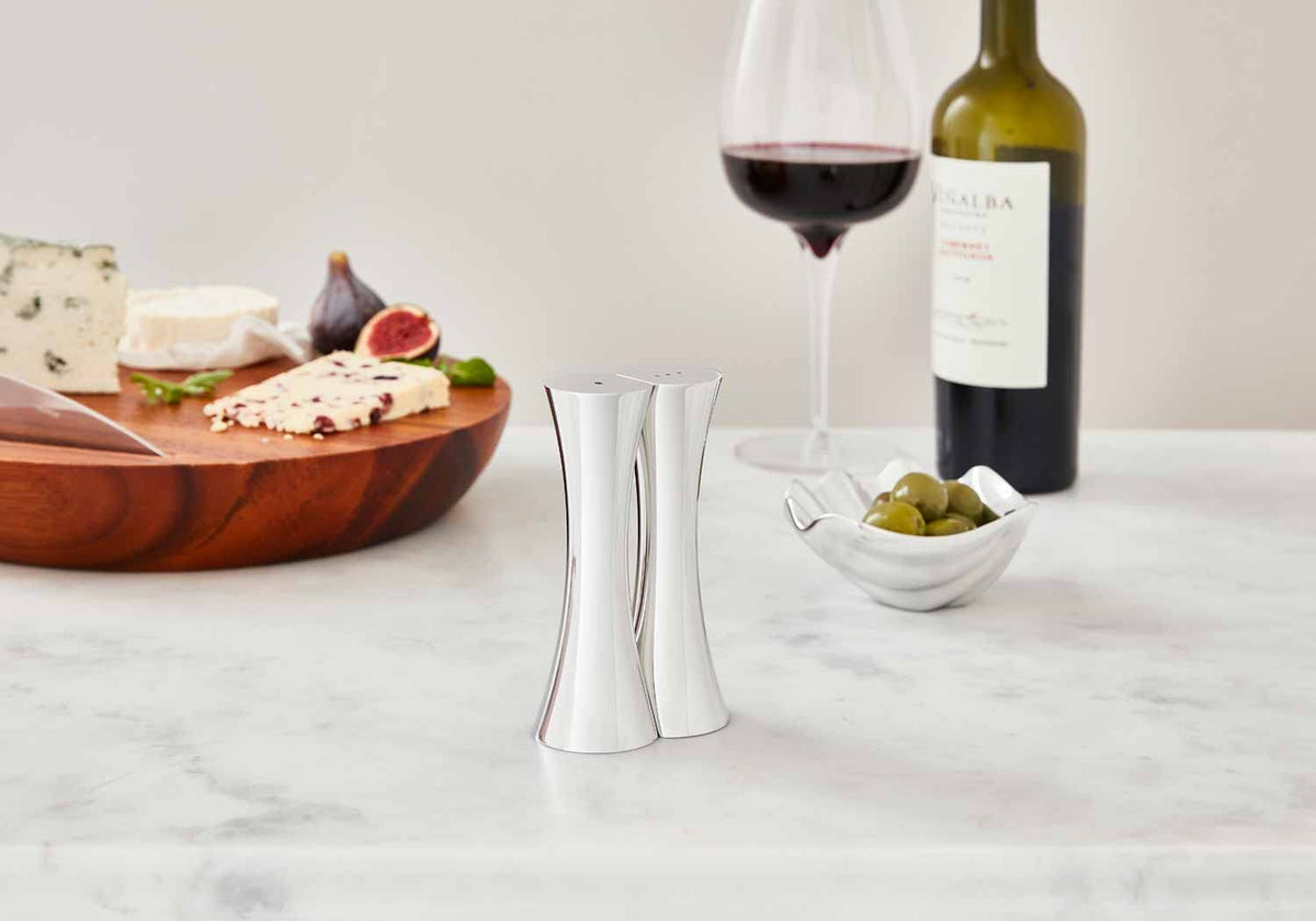 - Q: What makes these shakers a good gift option? A: Their romantic and elegant design, combined with the quality of Nambé Alloy, makes them a thoughtful gift for weddings, anniversaries, or housewarmings.