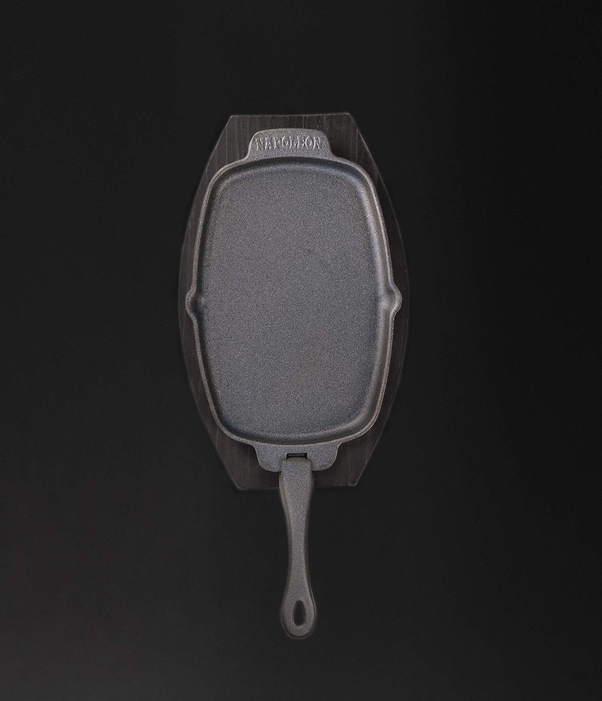 Napoleon Bbq Grill Accessory - Cast Iron Sizzle Platter - 56008 - Wooden Platter For Serving, Use On Side Burner, Use In Oven, U
