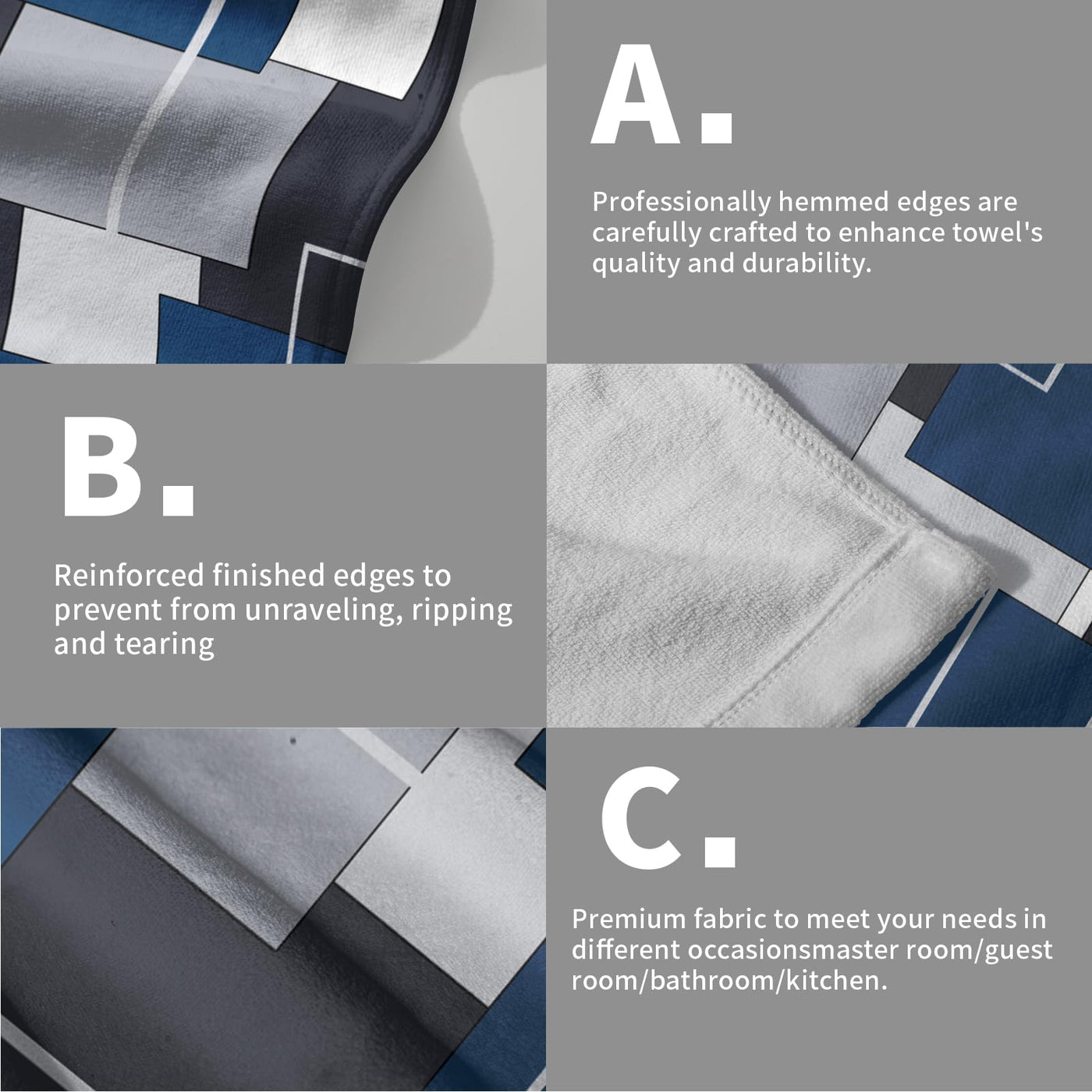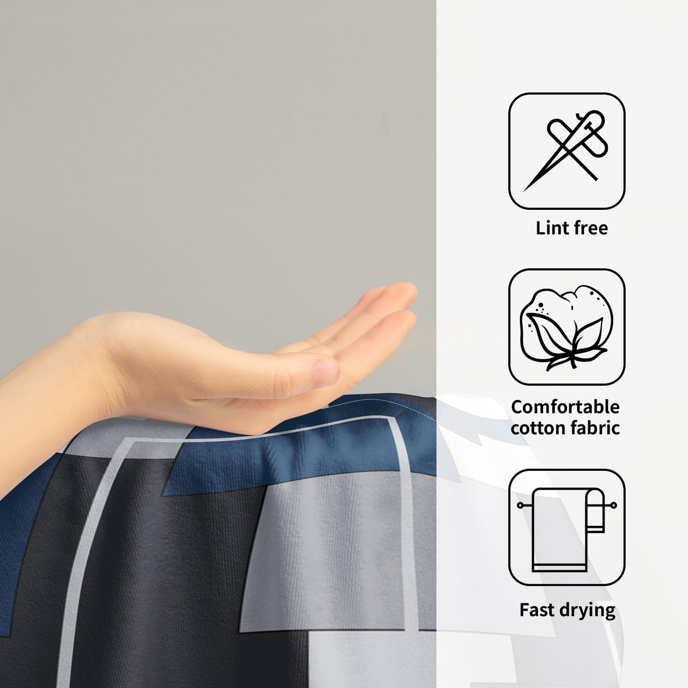 Navy Blue Geometric Hand Towels For Bathroom Set Of 2 Navy Blue Black Modern Decorative Hand Towels For Bathroom Microfiber Abst
