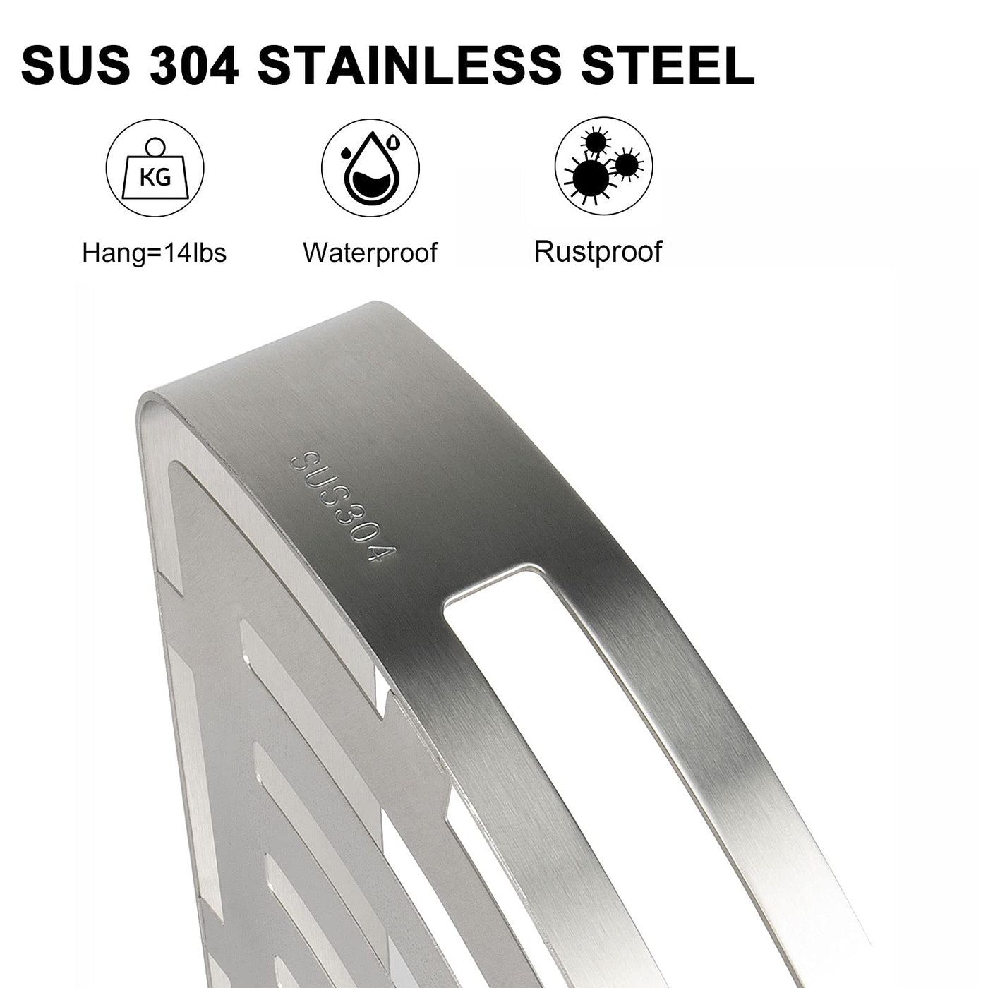 • Q: What material is the shower caddy made of? A: The shower caddy is constructed from SUS 304 stainless steel, which is waterproof and rust-resistant, ensuring durability and longevity.