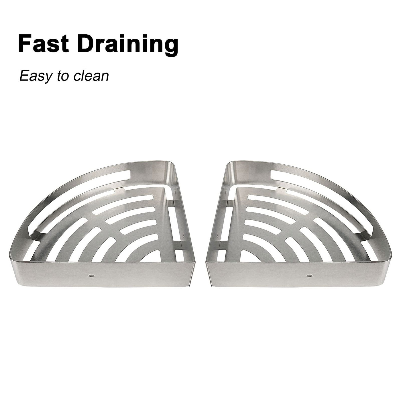 Nearmoon Bathroom Corner Shelf Shower Caddy 2 Pack, No Drill, 304 Stainless Steel, With Two Hooks (Brushed Nickel)