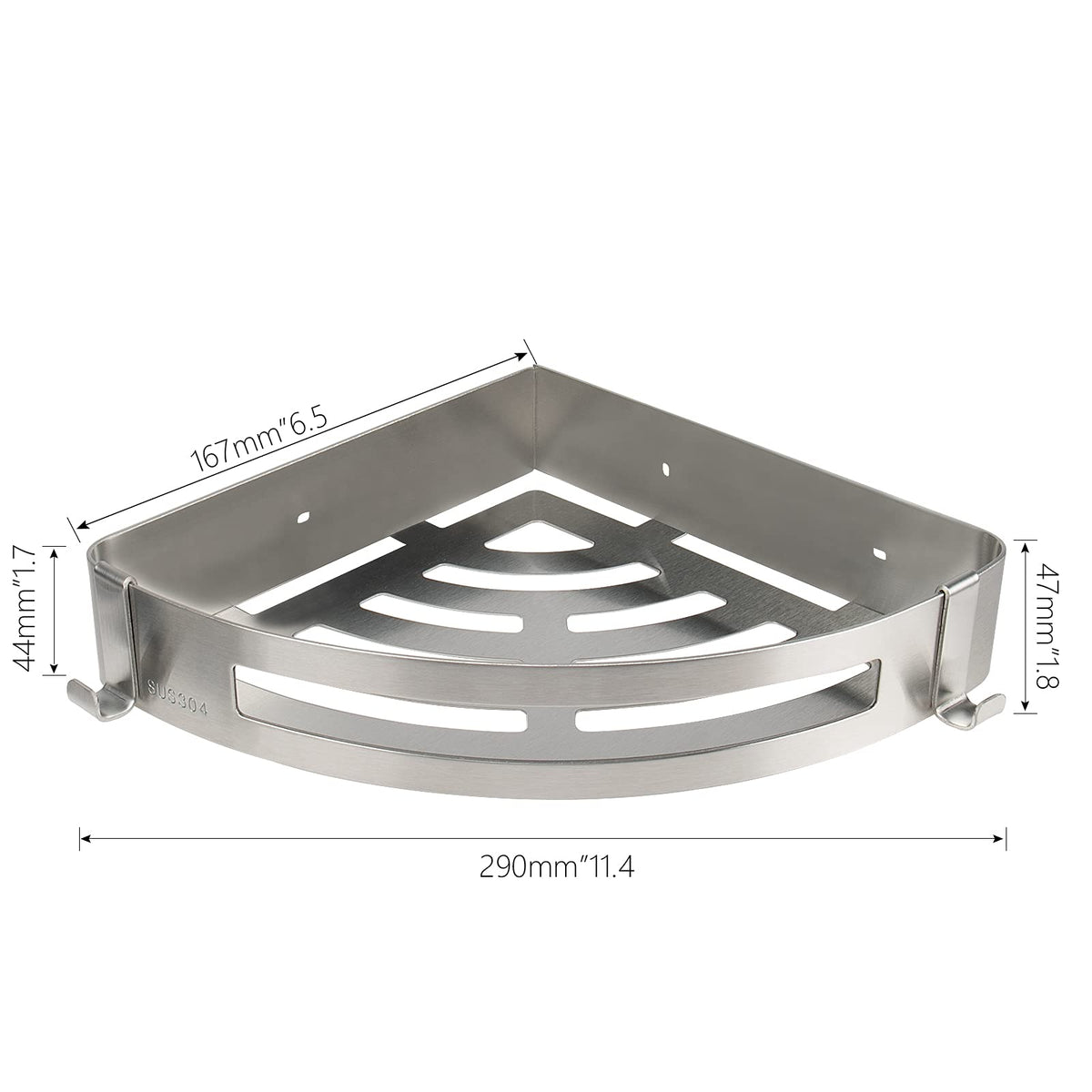 • Q: What is the finish of the shower caddy? A: The caddy features a brushed nickel finish, which adds a stylish and upscale look to your bathroom.