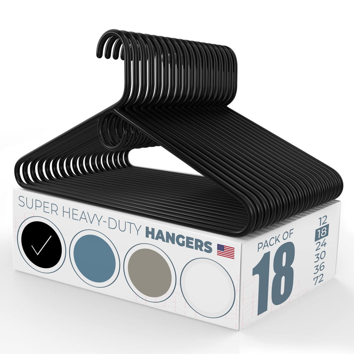 Neaties Super Heavy-Duty Plastic Hangers Black (12, 18, 24, 30, 36, 72 Packs) - Non-Slip Heavy-Duty Plastic Clothes Hangers With
