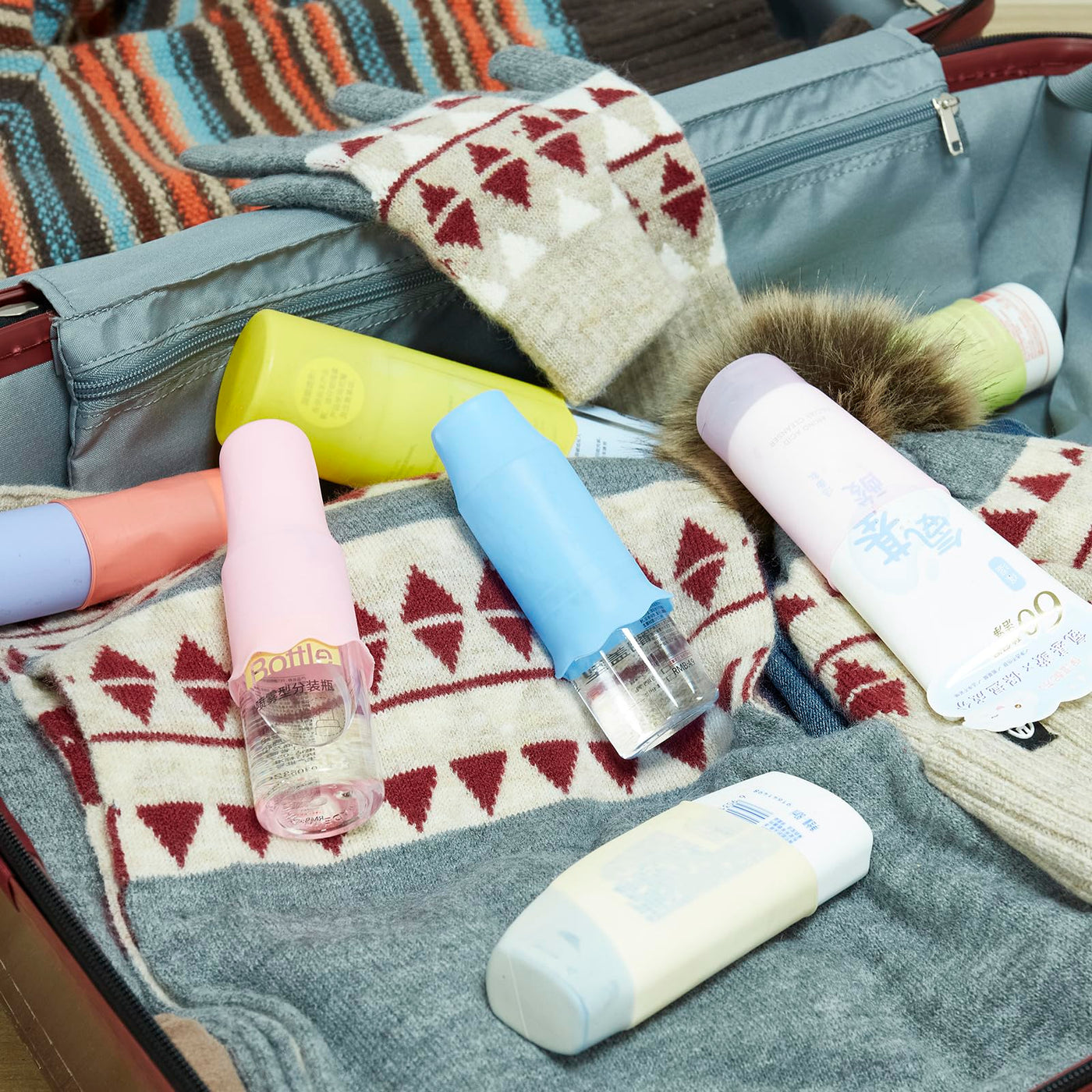 • Q: Are these silicone bottle covers leak-proof? A: Yes, these silicone bottle covers are designed to securely hug your toiletries, preventing messy leaks in your makeup bag, luggage, or clothes during travel.