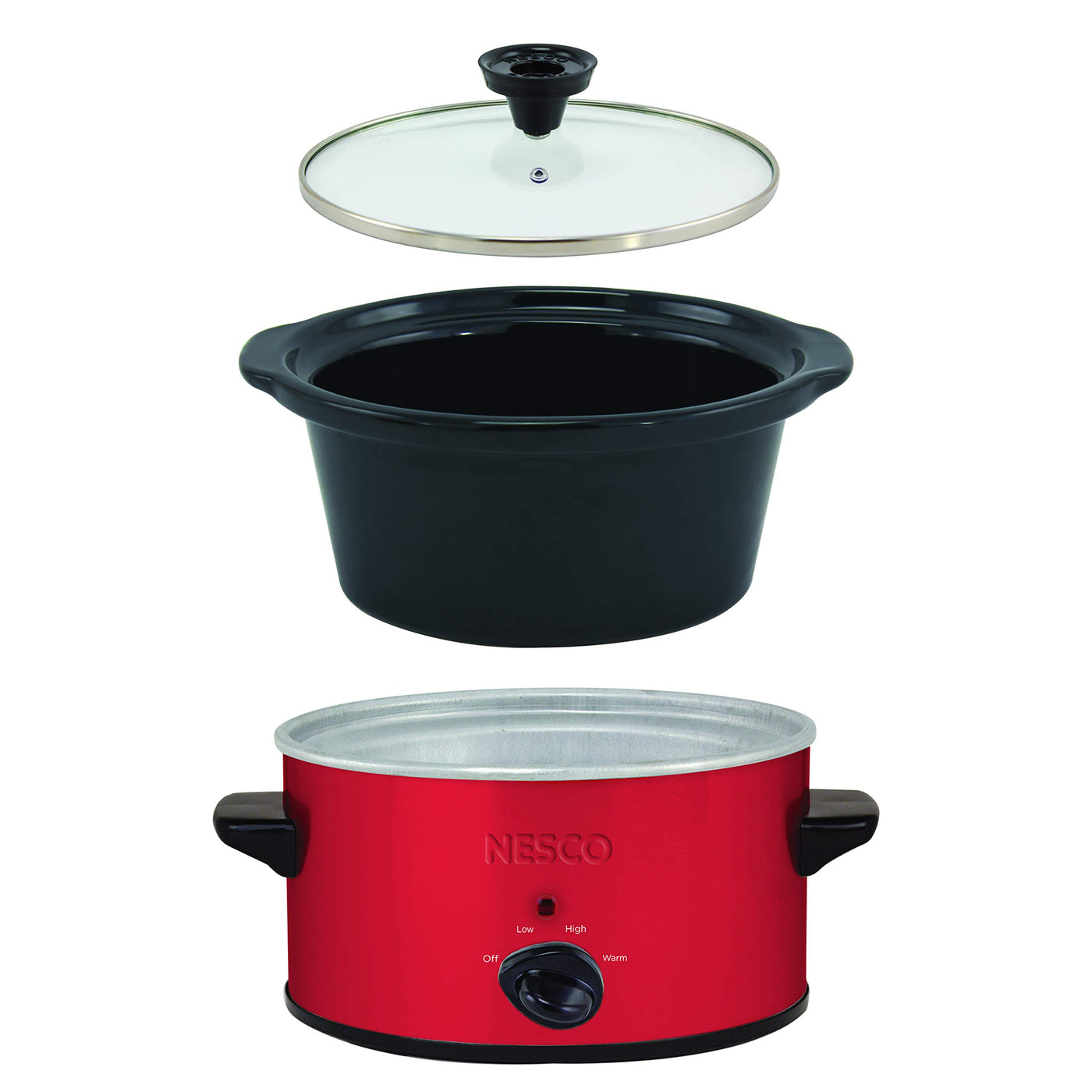 • Q: What materials is the NESCO SC-150R made from? A: The NESCO SC-150R Slow Cooker has a chic metallic red body and a ceramic crock, combining style with functionality.