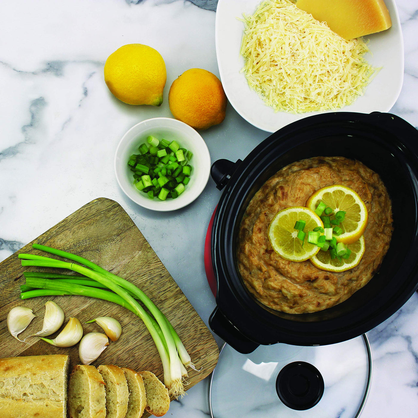 • Q: What types of meals can I prepare with this slow cooker? A: This slow cooker is perfect for preparing a variety of one-pot meals, including soups, stews, and casseroles, especially those requiring long, slow simmering.