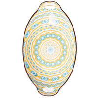 Nestasia Blue & Yellow Mandala Ceramic Long Dish with Handles for Serving Snacks, Appetizers, Salads, and Noodles| Microwave Saf