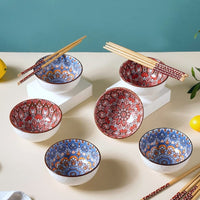 Nestasia Ceramic Bowl Set Of 6 With Chopsticks | Microwave & Dishwasher Safe Bowl With Mandala Pattern | Perfect For Snacks, Sou