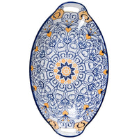 Nestasia Dark Blue Mandala Ceramic Long Dish with Handles for Serving Snacks, Appetizers, Salads, and Noodles| Microwave Safe, D