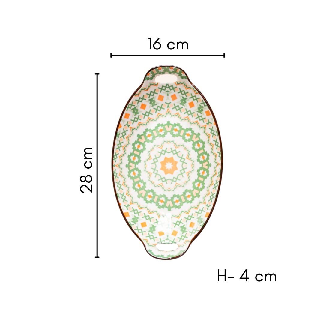 Nestasia Green Criss-Cross Ceramic Long Dish with Handles for Serving Snacks, Appetizers, Salads, and Noodles| Microwave Safe, D