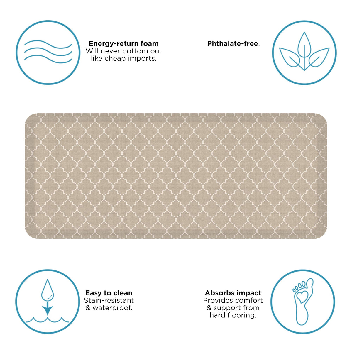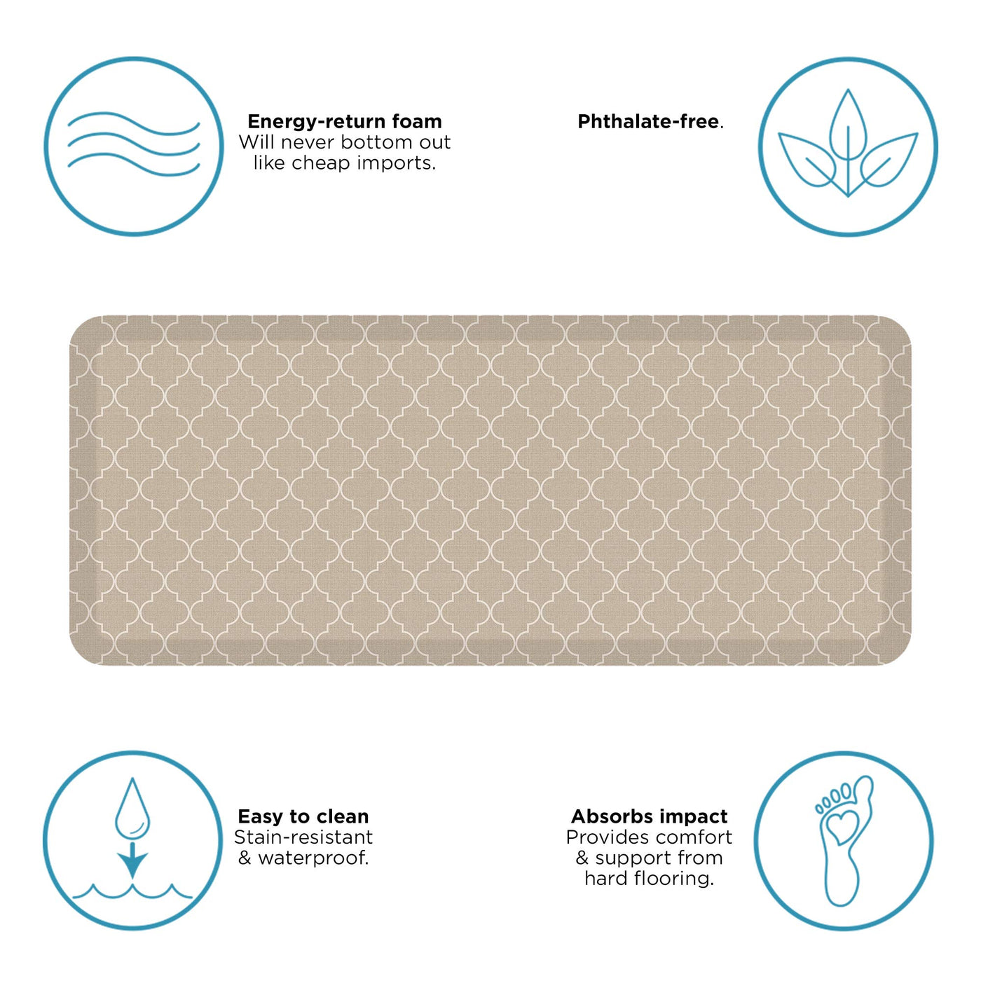 NewLife by GelPro Anti-Fatigue Designer Comfort Kitchen Floor Mat 20x48'' Trellis Khaki Stain Resistant Surface with 3/4 Thick Ergo-foam Core for Health and Wellness