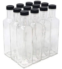 • Q: How many bottles are included in a case? A: Each case contains 12 clear glass square bottles.