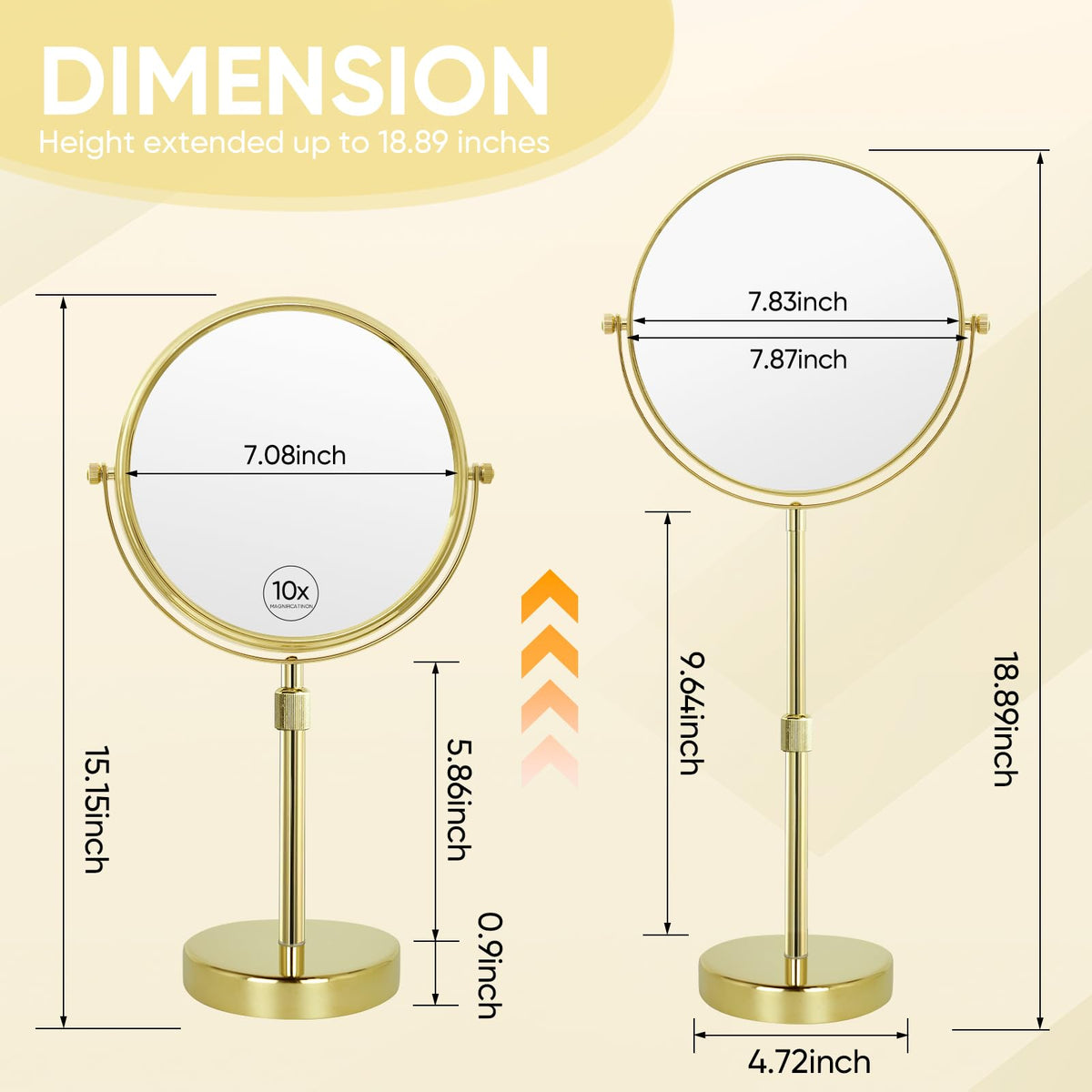 Nicesail Table Mirror 1X 10X Magnifying Mirror Double Sided, Vanity Makeup Mirror 360 Rotation 8 Inch Desk Mirror, Shiny Gold
