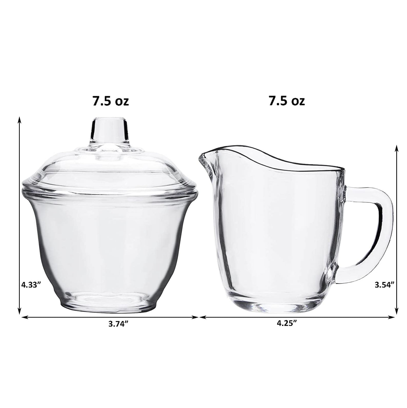 - Q: What are the dimensions and capacity of the sugar bowl? A: The sugar bowl measures 3.74 inches in length, 3.74 inches in width, and 4.33 inches in height, with a capacity of 7.5 ounces.