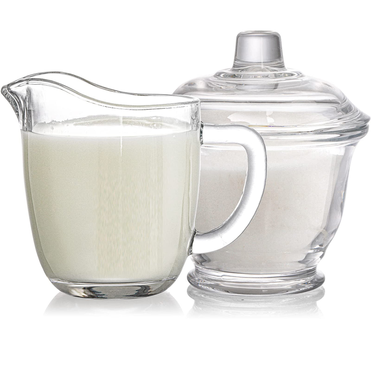 - Q: What is included in the Nicunom Glass Sugar and Creamer Set? A: The Nicunom Glass Sugar and Creamer Set includes one cream jug and one sugar bowl with a lid.