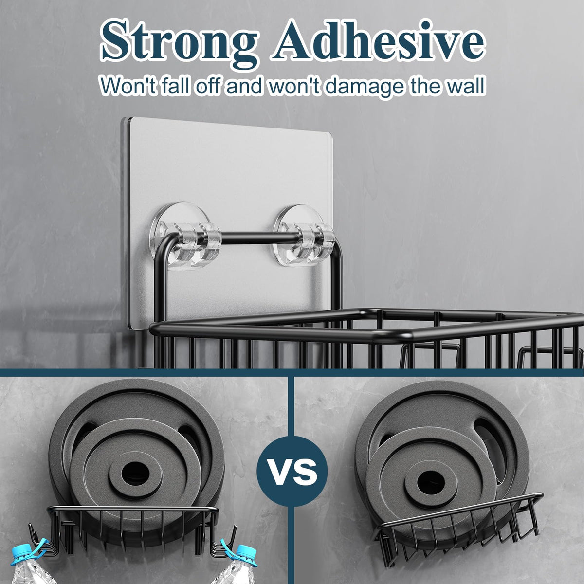Nieifi Soap Dish Holder With 4 Hooks Stainless Steel Black Adhesive For Shower, Bathroom