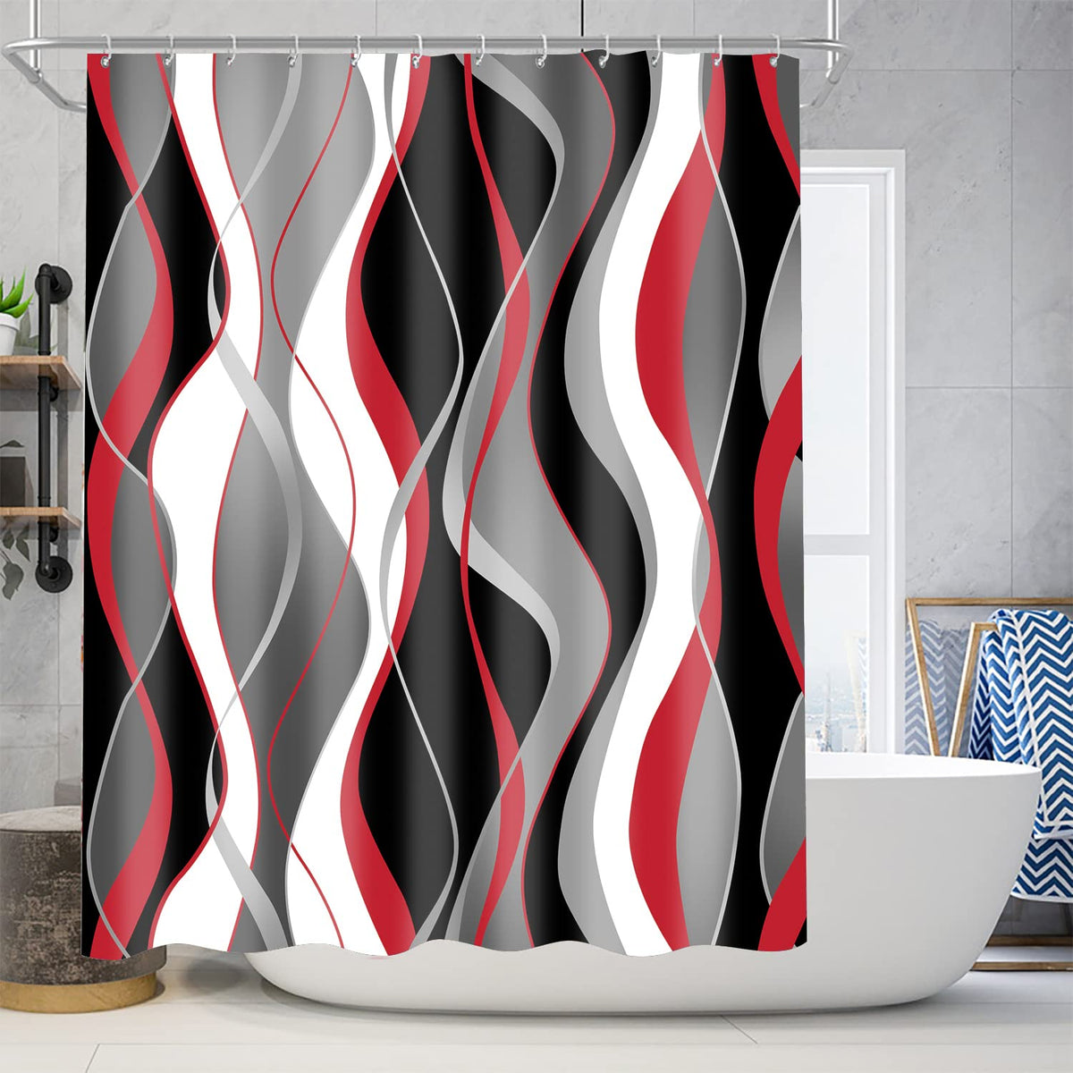 Nkzply 4 Pcs Red And Black Striped Shower Curtain Set Grey And White Bathroom Sets With Shower Curtain And Rugs Red Modern Home