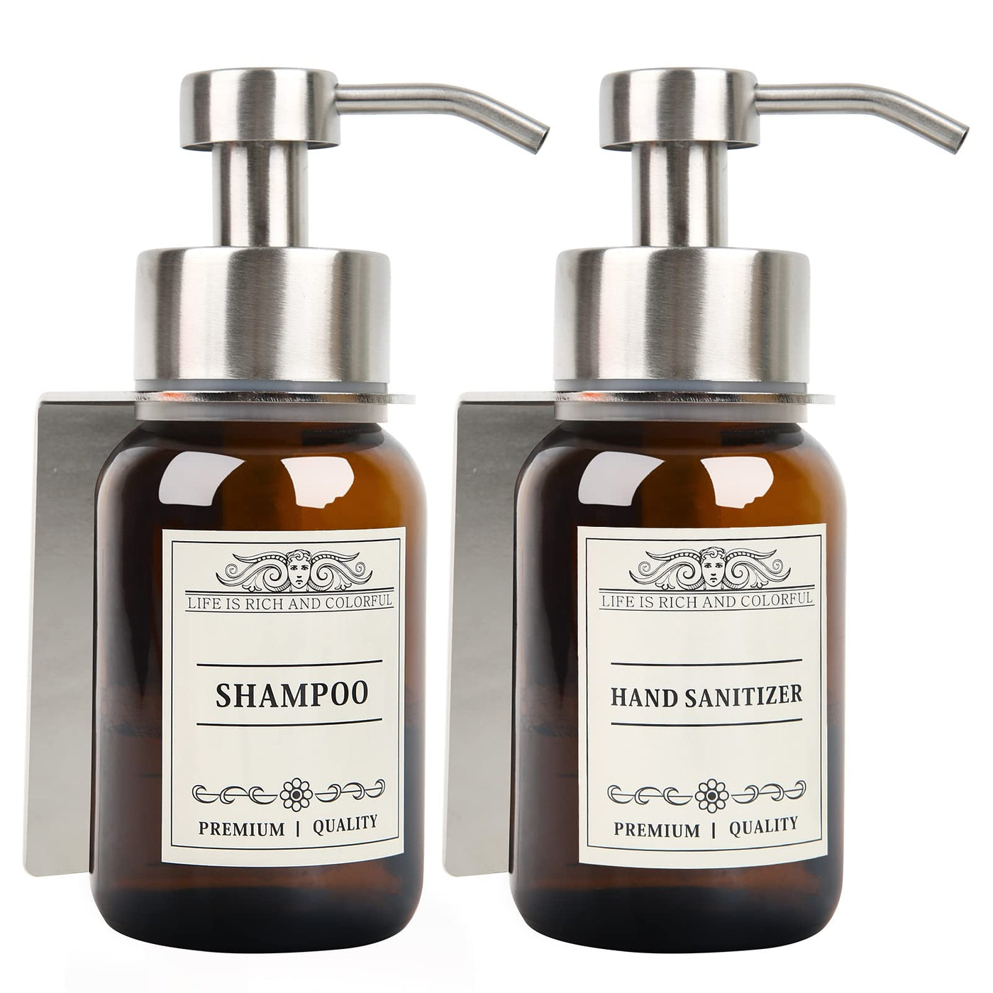 Nobtou Glass Soap Dispenser With Pump And Drill-Free Wall Mount Holder,8.5 Oz Shampoo And Conditioner Dispenser,Dish Soap Dispen