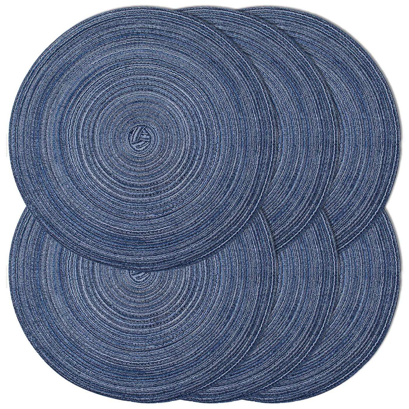 - Q: Do these placemats come in different colors? A: This set is available in a stylish blue color, but other colors may also be available depending on the retailer.