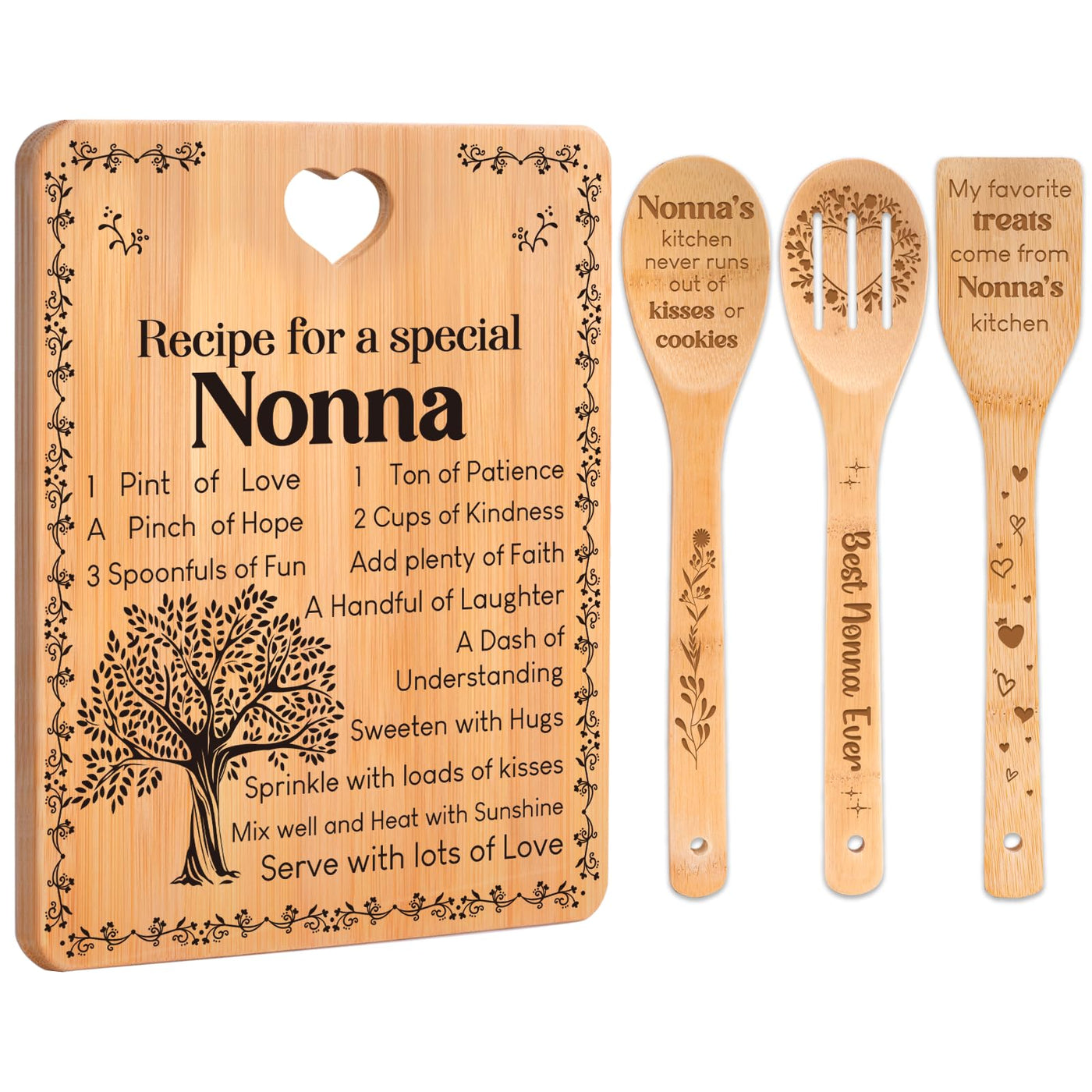 Nonna Gifts - Recipe for a Special Nonna Gifts for Nonna Cutting Board Set, Bamboo-Made Engraved Utensil Set Nonna Gifts for G