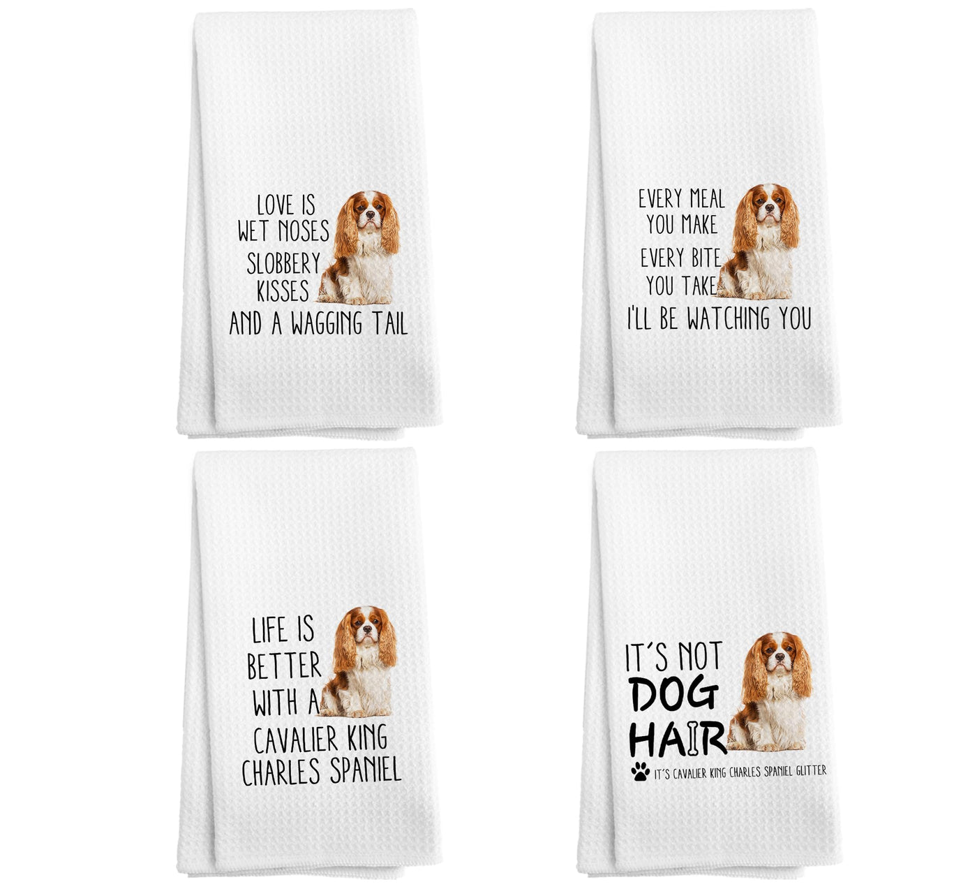 NOQL Cavalier King Charles Spaniel Dog Kitchen Towels and Dishcloths Set of 4, Cavalier King Charles Spaniel Gifts for Women, Do