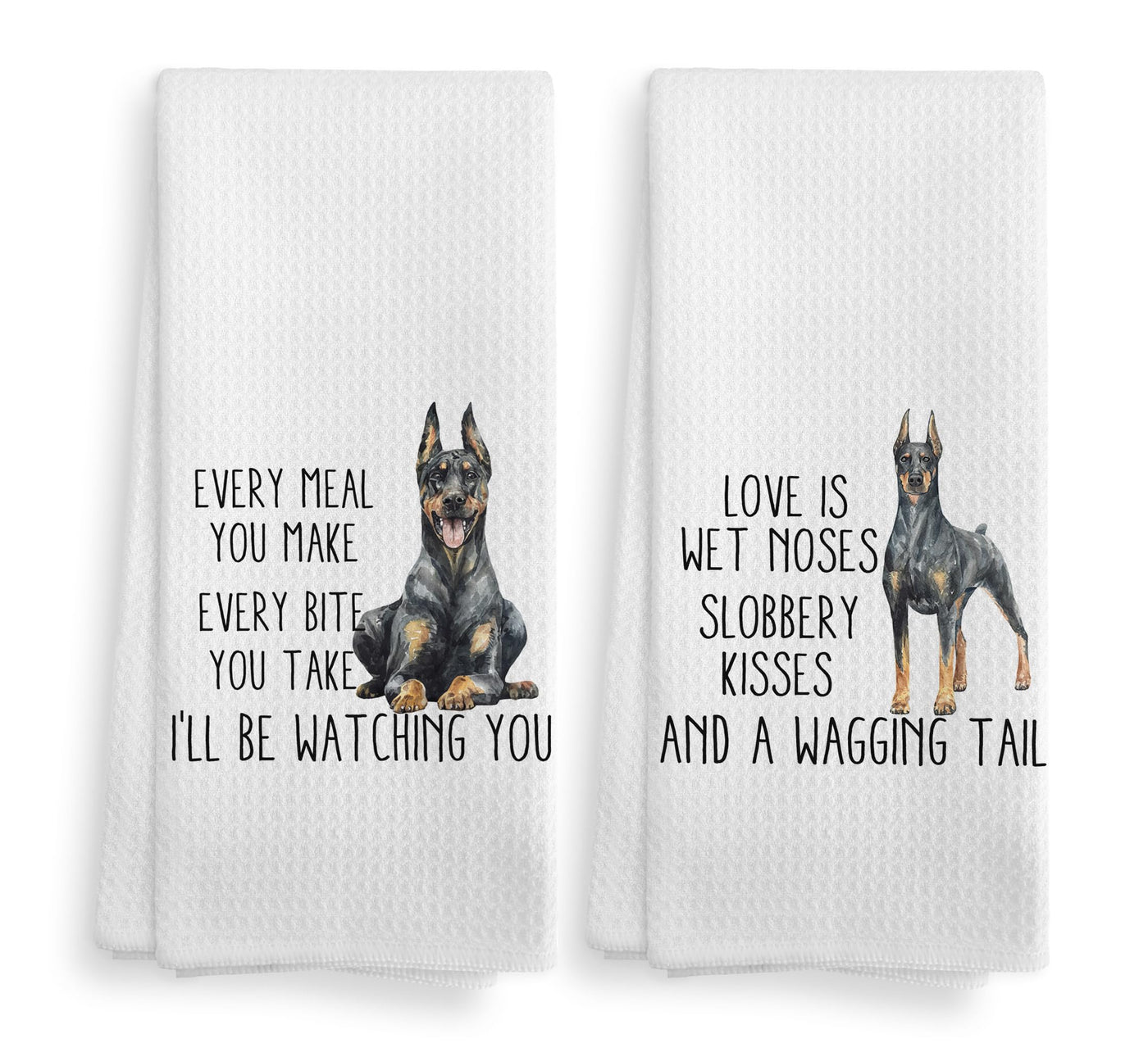 NOQL Doberman Dog Kitchen Towels and Dishcloths Set of 2, Doberman Dog Decor, Doberman Gifts for Women, 16 24 Inches