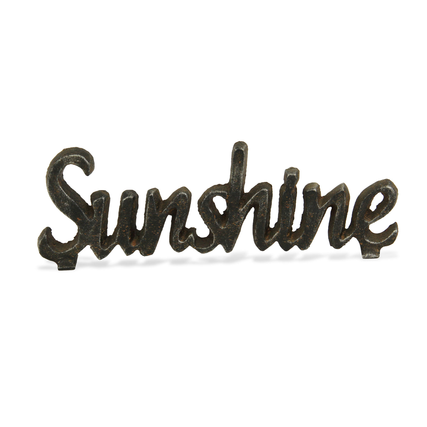 • Q: What does the decor piece say? A: The piece features cursive wording that says 'sunshine', adding a positive touch to your space.