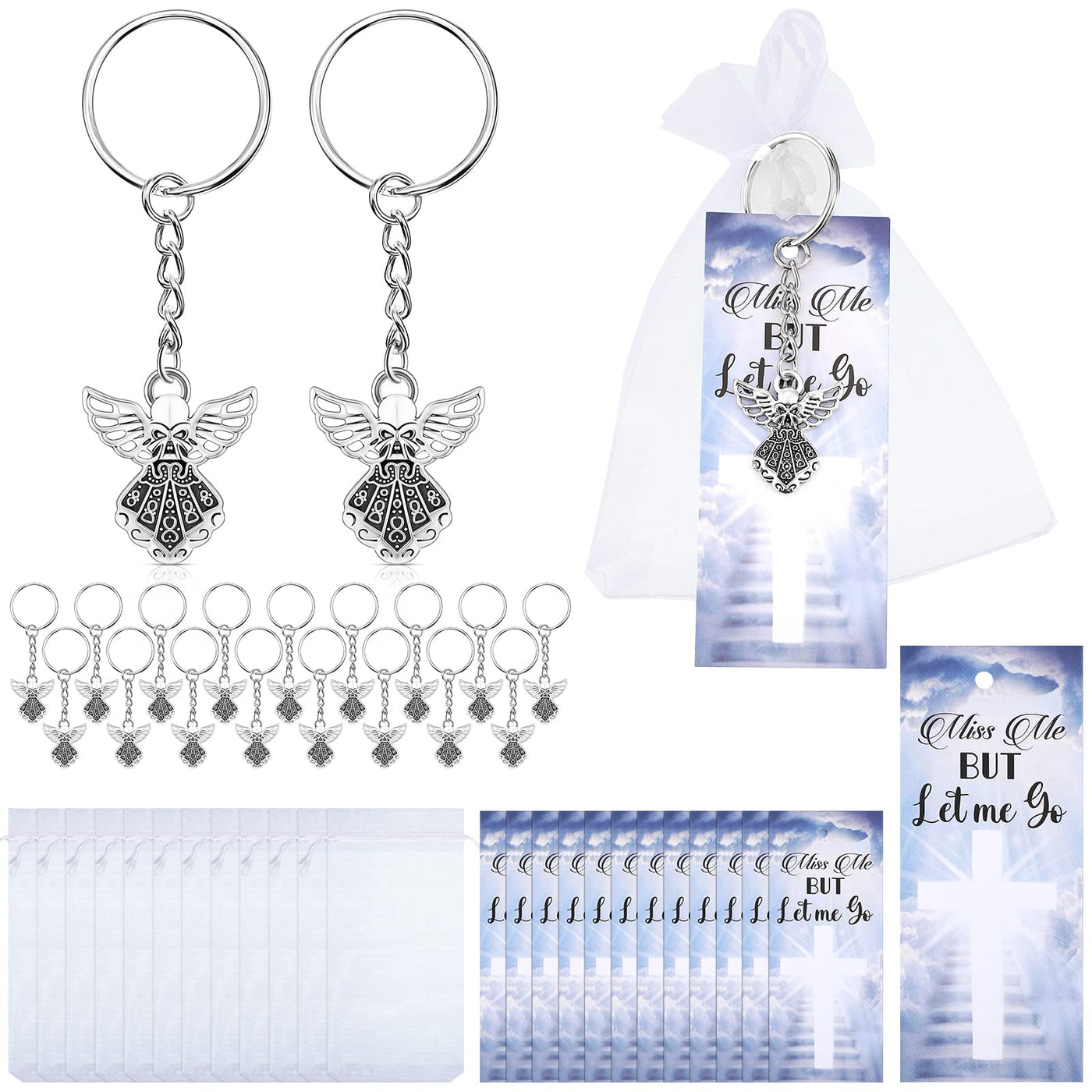Nosiny 108 Pieces Funeral Favors Thank You Set Includes 36 Angel Keychains 36 Organza Bags 36 Miss Me But Let Me Go Prayer Cards
