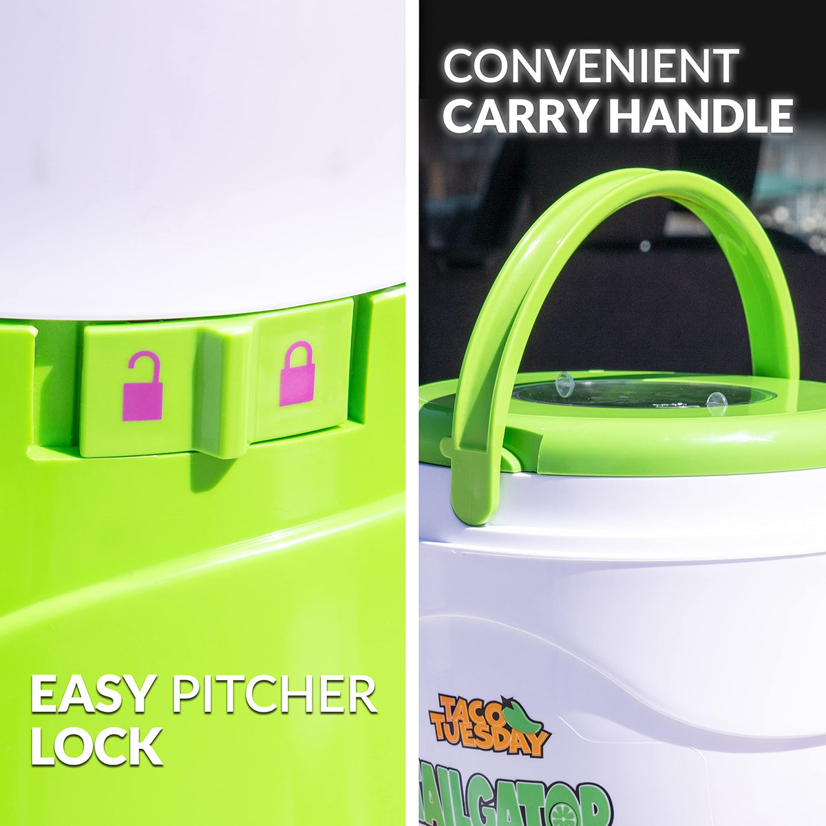 Nostalgia Taco Tuesday Tailgator Margarita Machine - Blender For Smoothies, Margaritas, Daiquiris, And Slushies - White/Lime Gre