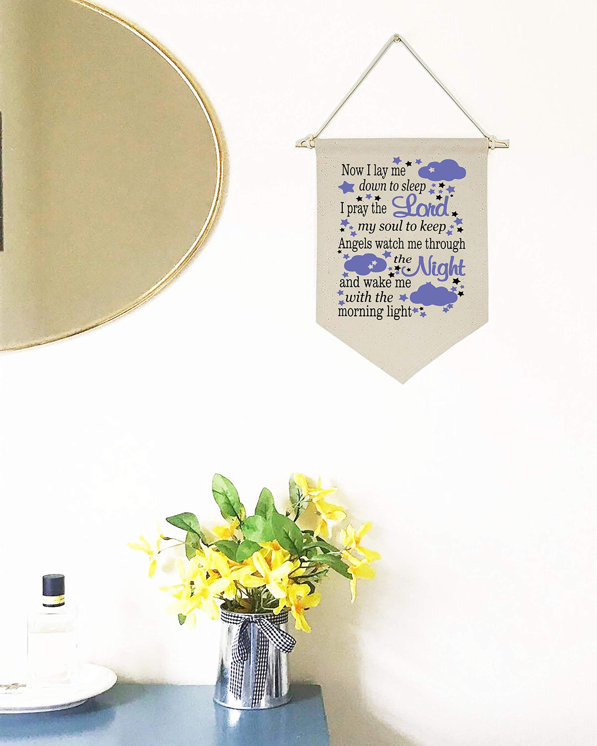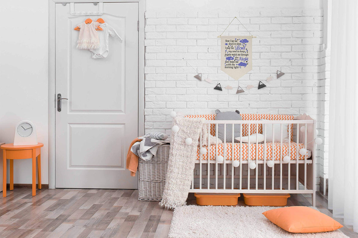 Now I Lay Me Down to Sleep I Pray The Lord My Soul to Keep - Canvas Hanging Flag Banner Wall Sign Decor Gift for Boys Kids Nursery Teen Room Front Door