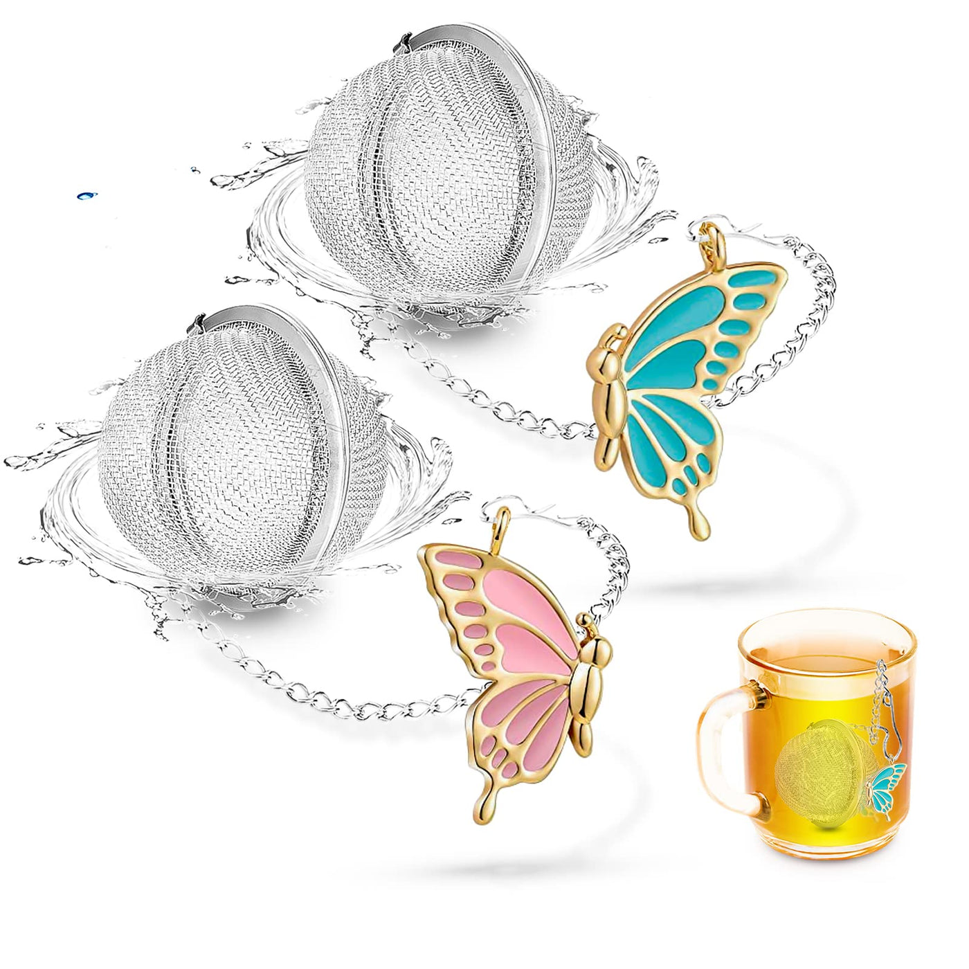 Nstaygate 2Pcs Tea Steeper For Loose Tea,Tea Infuser Tea Balls For Loose Tea With Charm Handmade Cute Butterfly Bff Pendant Loos