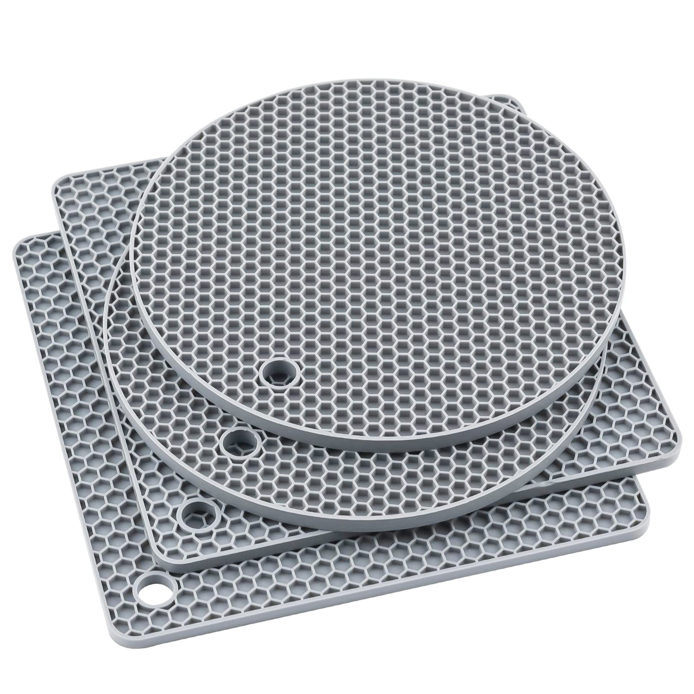 - Q: What is included in the package of silicone trivets? A: The package includes a set of four silicone trivets, consisting of two round and two square mats.