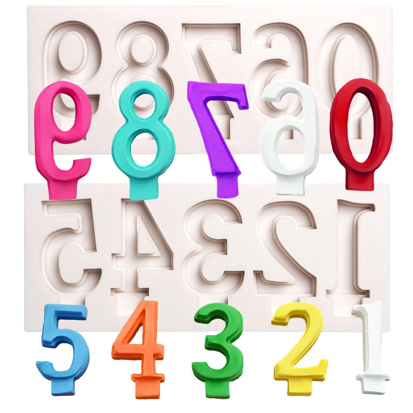 Number Chocolate Silicone Molds, 2 Packs Number 0-9 Fondant Molds For Baking Birthday Cake Decoration, Graduation Cupcake Topper