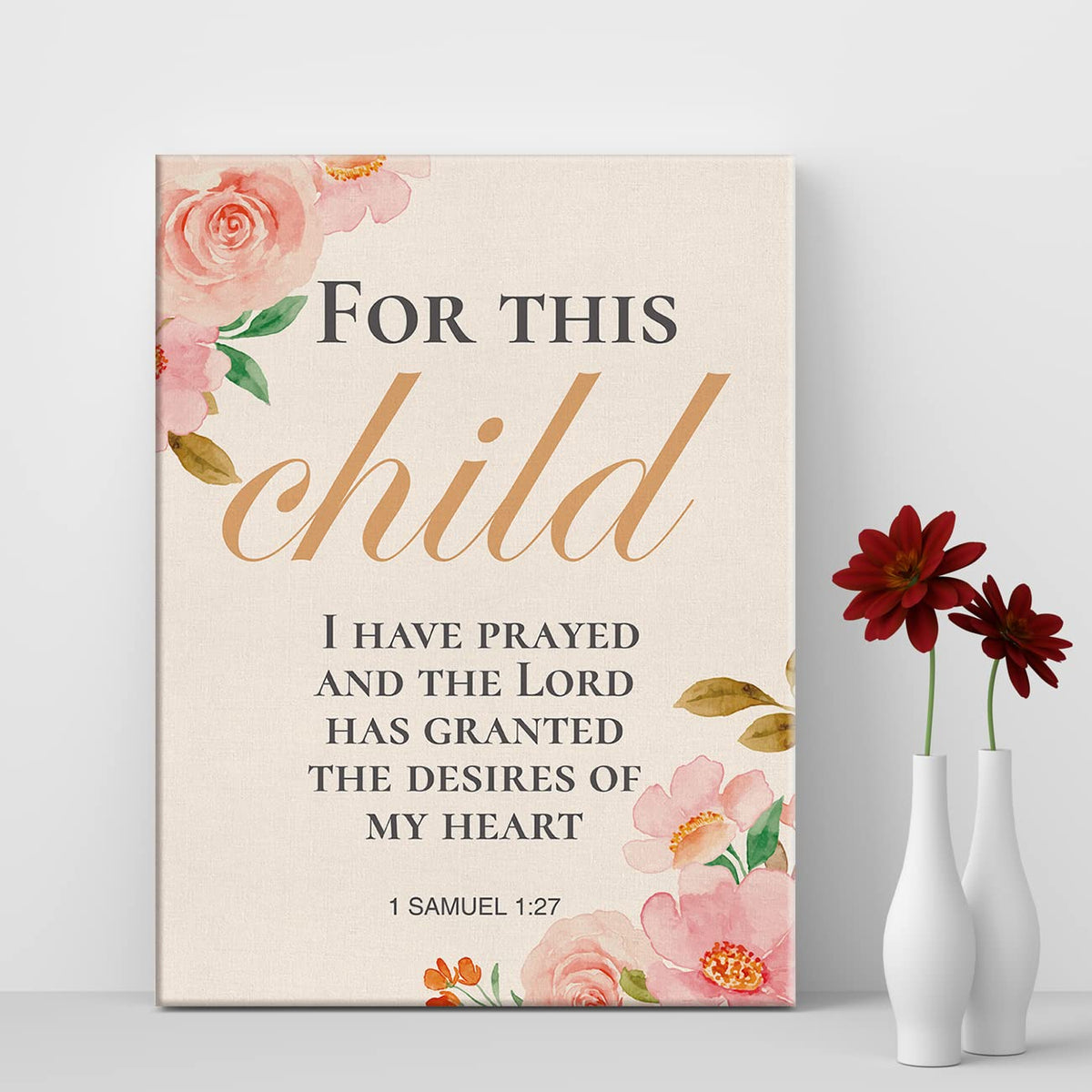 Nursery Bible Verse Print Canvas Wall Art Home Decor for This Child I Have Prayed Painting 12x15 Canvas Poster Framed Ready to H