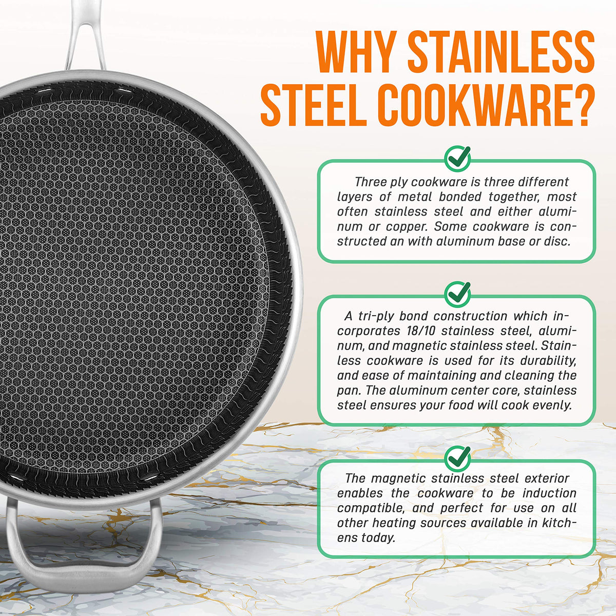 Nutrichef 3.4Qt Stainless Steel Jumbo Cooker - Triply Kitchenware Jumbo Cooker With Glass Lid - Dakin Etching Non-Stick Coating,